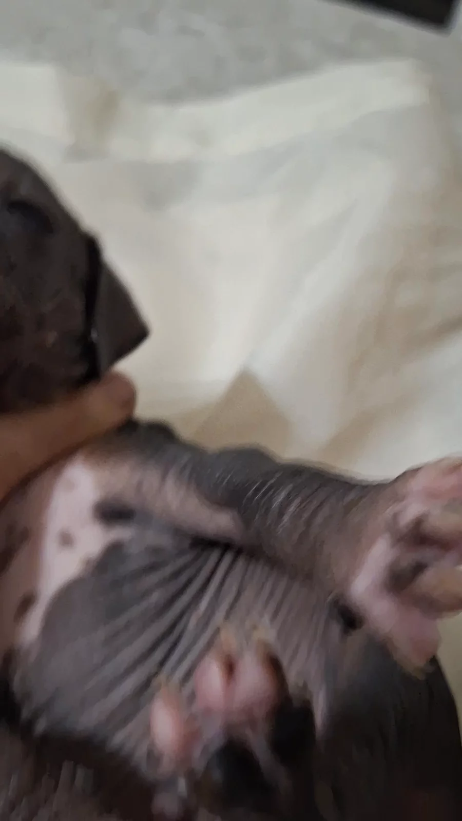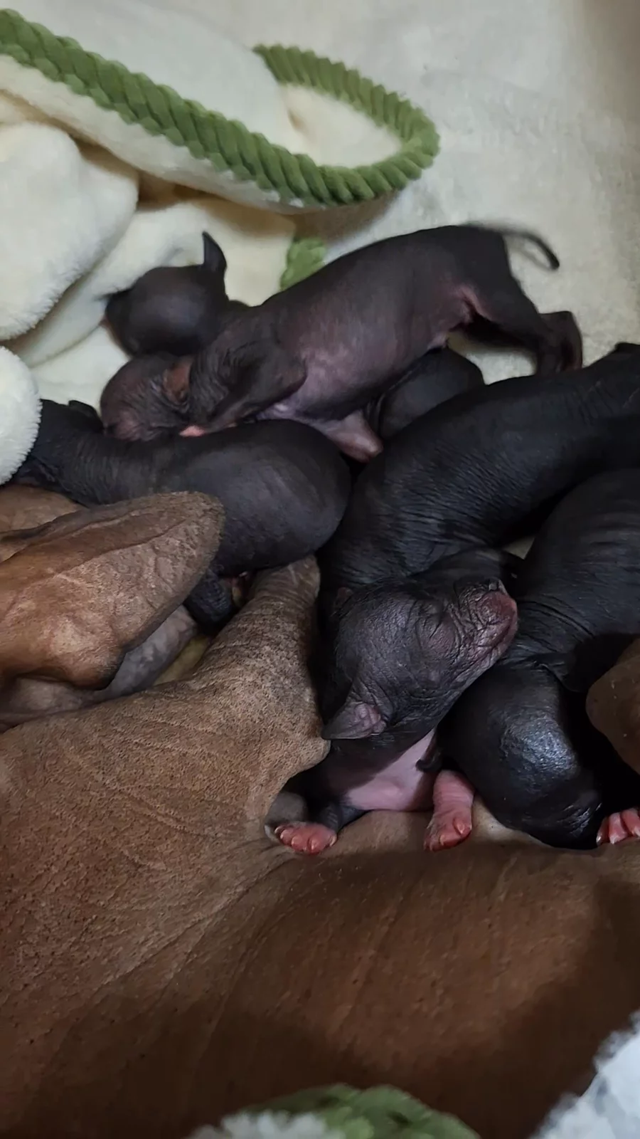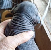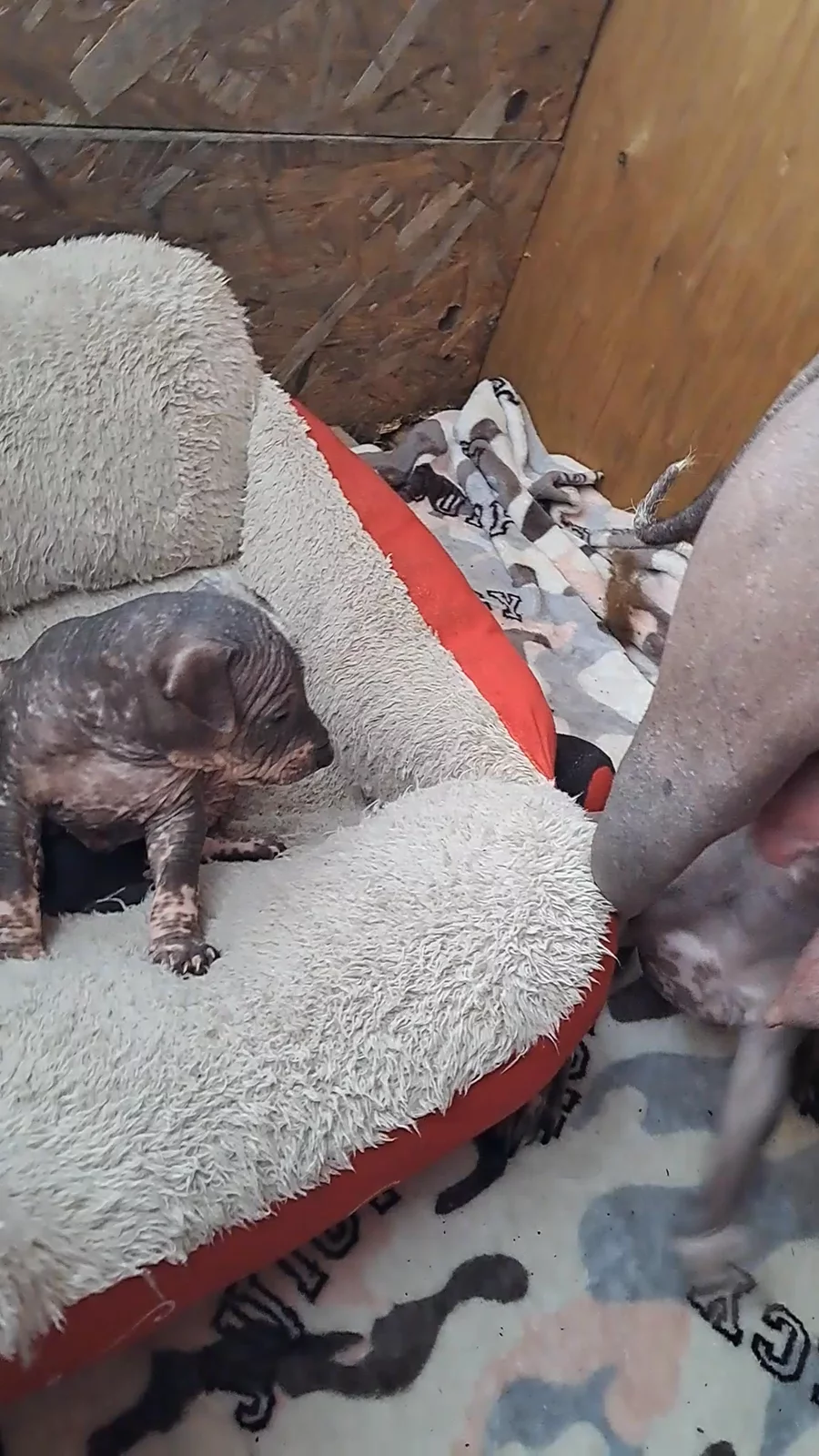 Our puppies have hairless coats. Coat types may vary depending on the parent dogs.