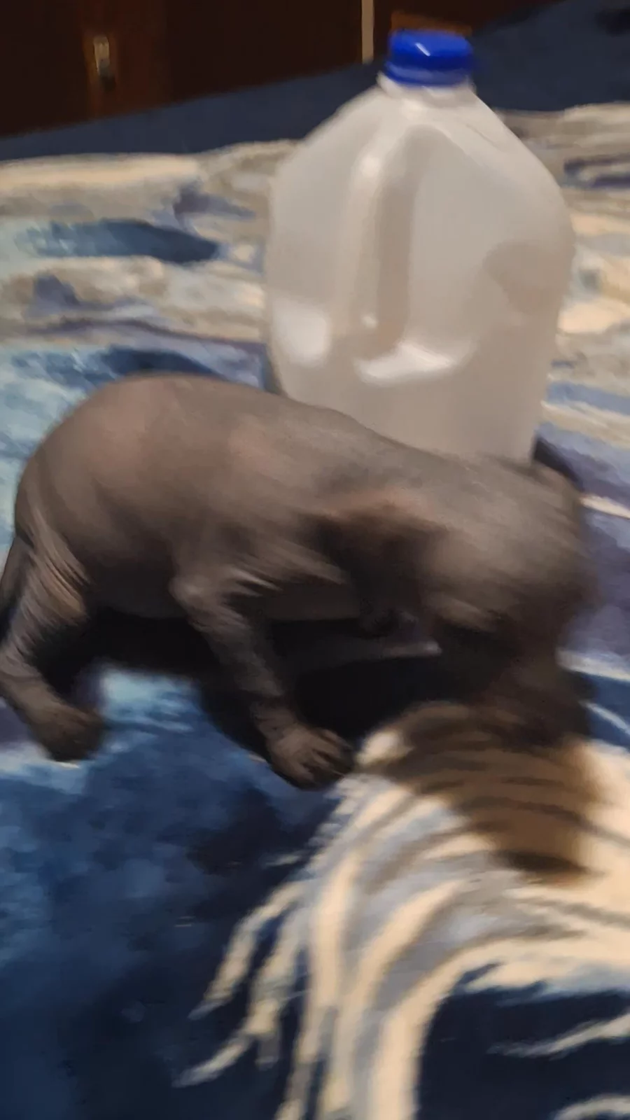 Male #4 Darkest, Largest, Wrinklyest...Once he stops turning his circles in this video...check out the top of his head...starting to get hair on his head!