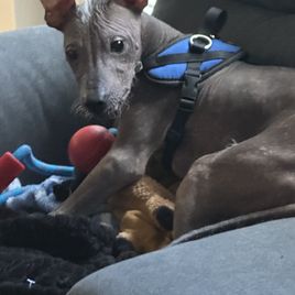 Queenie is the smallest of our Xoloitzcuintli and still stands up for what she wants... bed, food, lovens.