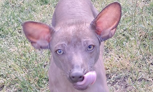 Buddy brings color to the program of Xoloitzcuintli I breed.