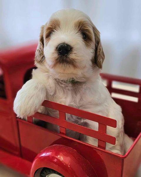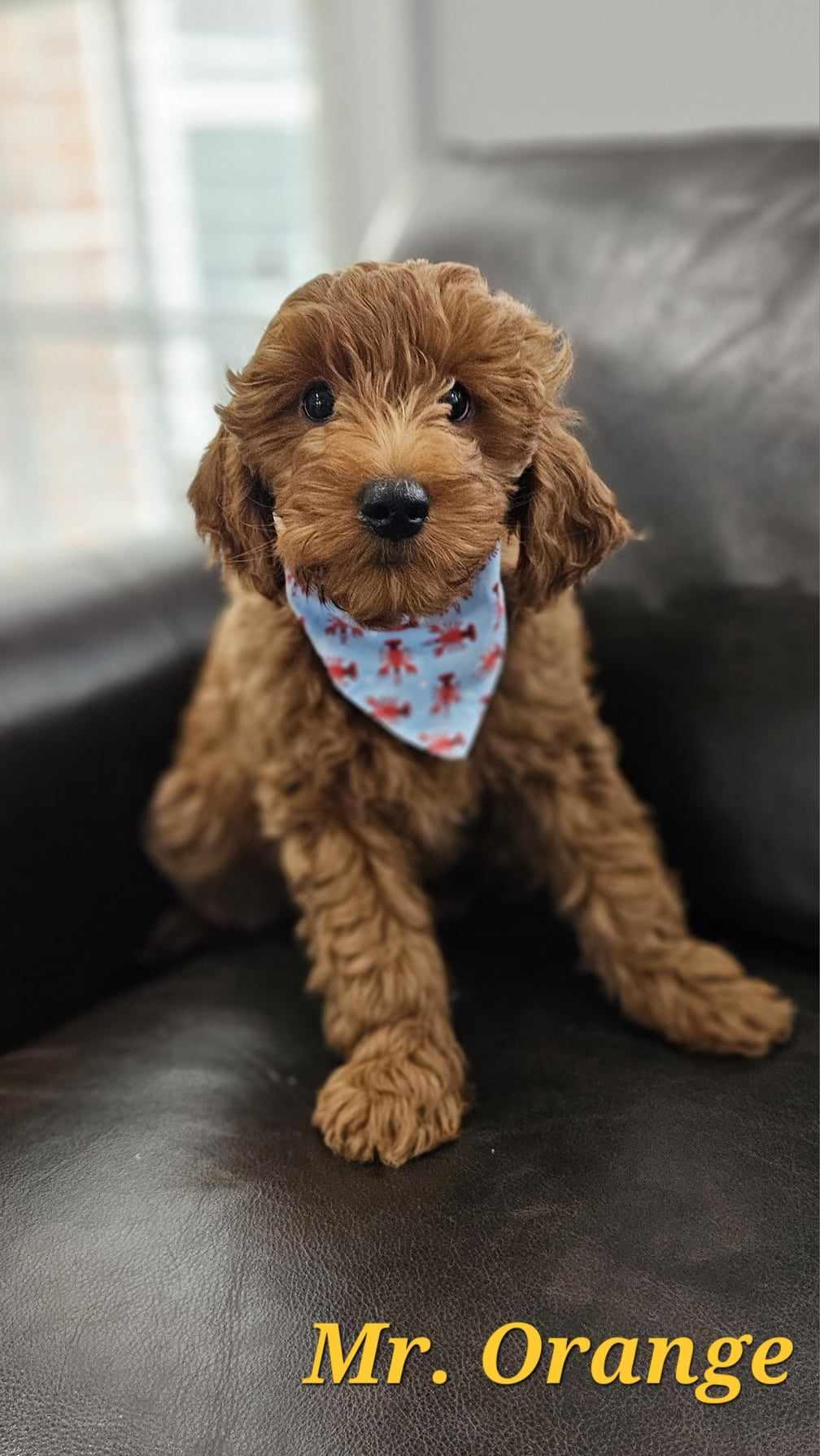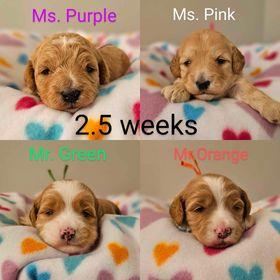 Our Poodle puppies include apricot, red, and parti. Goldendoodle puppies include apricot, red, and parti. Colors will vary depending on the parent dogs.