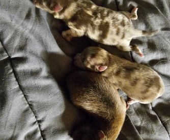 Our puppies include tri-colored, black and tan, and chocolate merle. Colors will vary depending on the parent dogs.