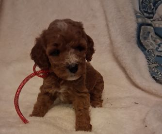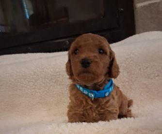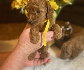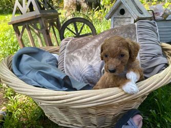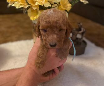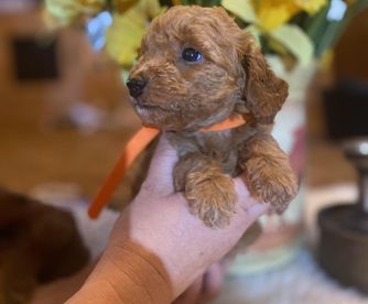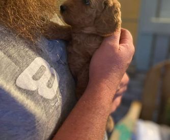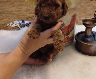 Max is a loving baby. He is very smart and well manored. He comes from a champion bloodline. He loves to be playful and to snuggle. He has been health test for genetics. He is our loved farm dog and is always helping the family on our farm. He is 14 inches tall.
