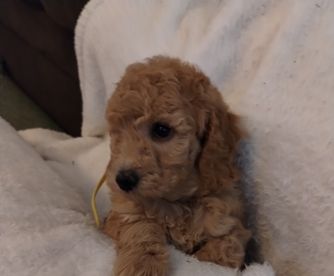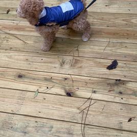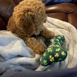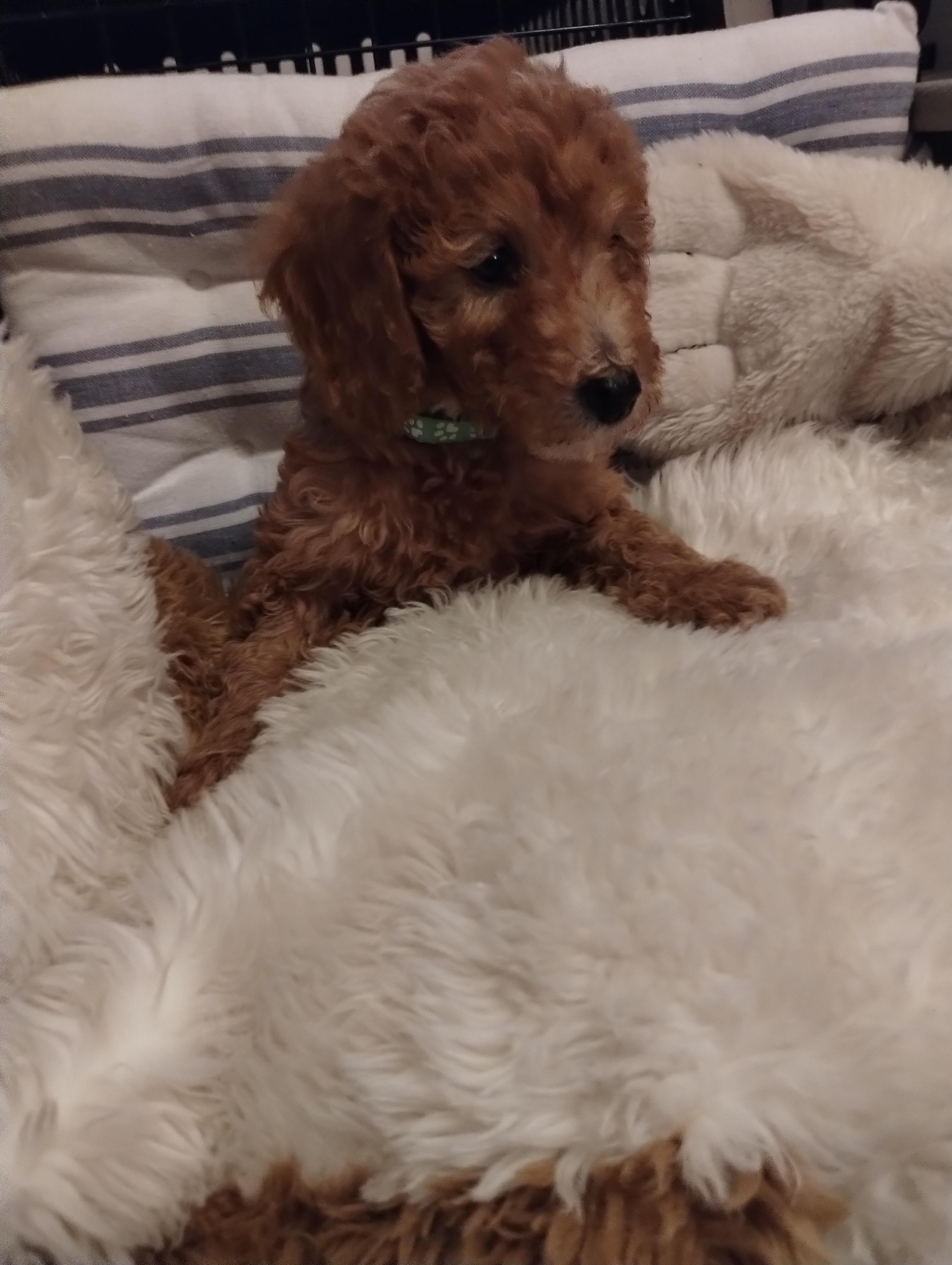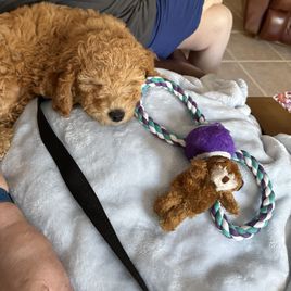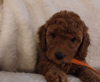 We just enjoyed getting to know about our miniature poodle, Chloe, before we picked her up. Chris and his family made everything easy to acquire Chloe, including meeting us half way between our home to transfer Chloe to our home from theirs. We had video conferences and they were quick to answer all our questions and provided us with the information we needed in advance. Chloe was well socialized before we received her at 8 weeks of age. You can tell that Chris and his family took excellent care of the parents and their litter. Chloe is good with children because of Chris’s children. When Jackie, Chris’ wife gave Chloe a bath before we met her she sent us photos. It was a delightful process and we enjoy Chloe very much.