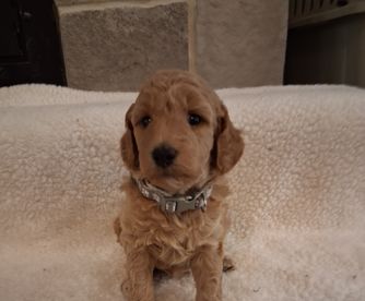 Our puppies are red. Colors will vary depending on the parent dogs.