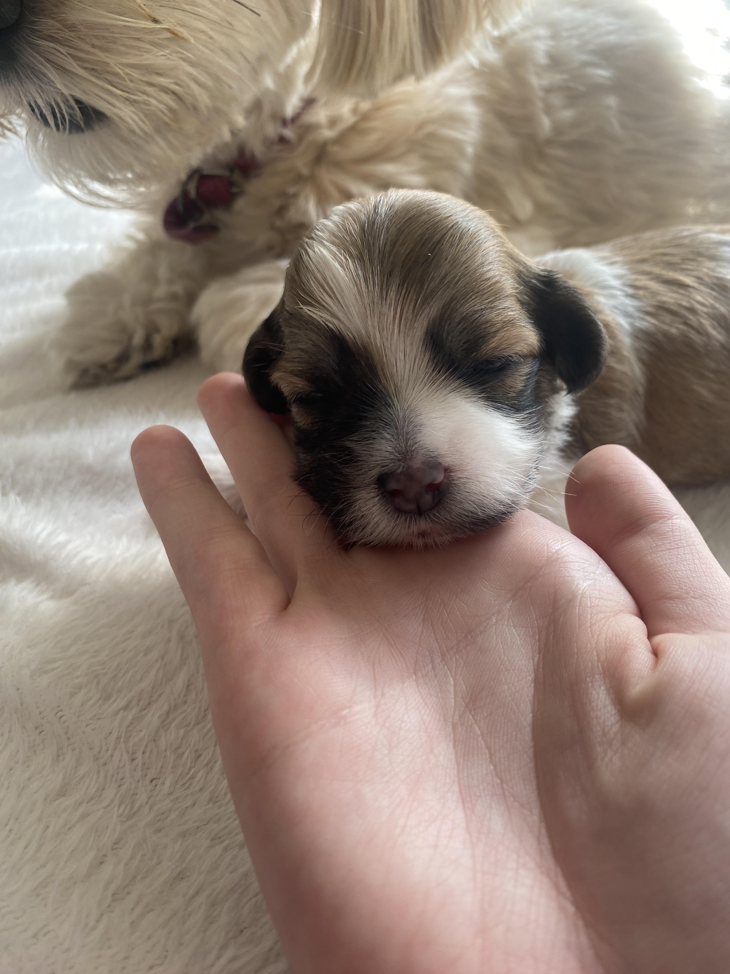 I perform Early Neurological Stimulation (ENS) on all my puppies.ENS is an exercise developed in the military to help improve neurological growth and development in puppies. For more information about ENS you can visit the American Kennel Club’s website https://www.akc.org/expert-advice/dog-breeding/breeder-puppy-socialization-early-neurological-stimulation/