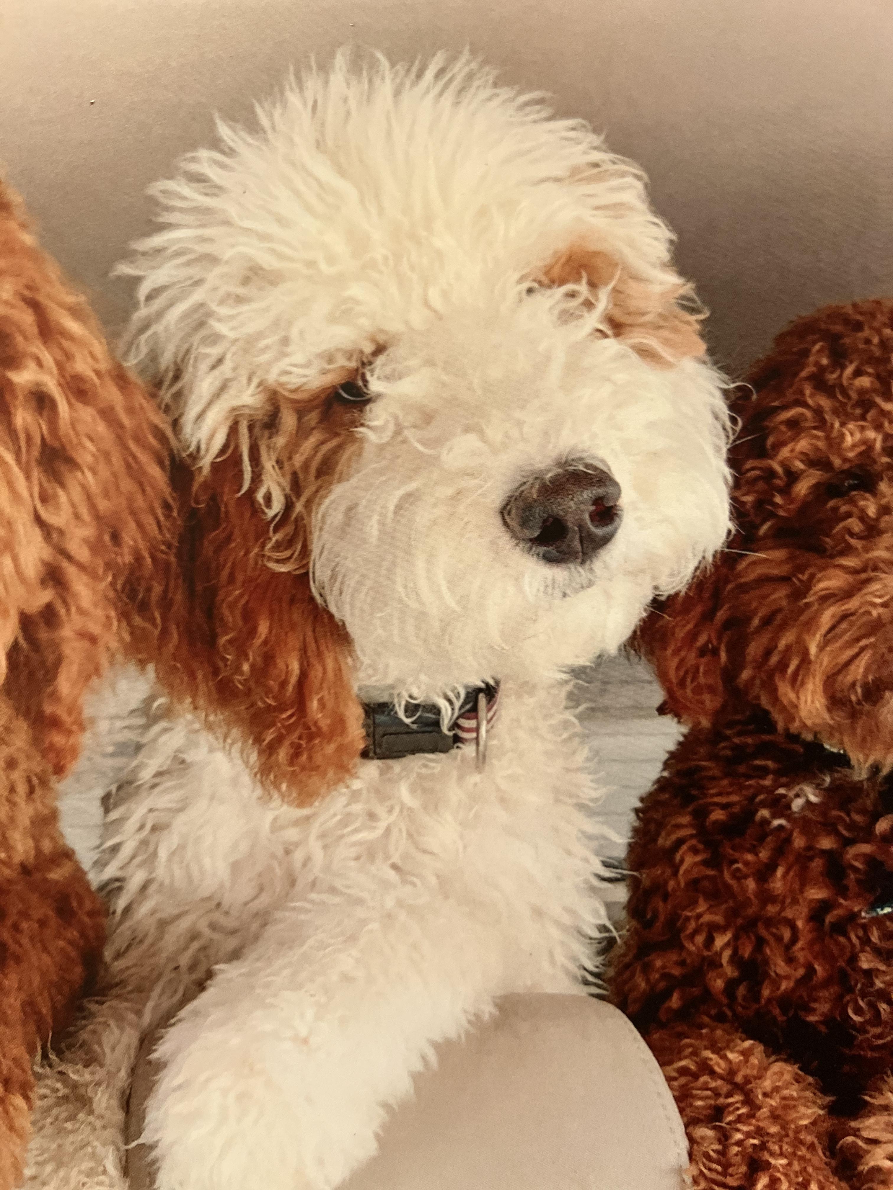 Frankie is a male Goldendoodle. Carefully selected as a great representative of his breed, Alison decided to make him part of their program. Alison has passed Good Dog’s screening process, which involved a review of their breeding practices, environment, and the mental and physical health of their dogs.