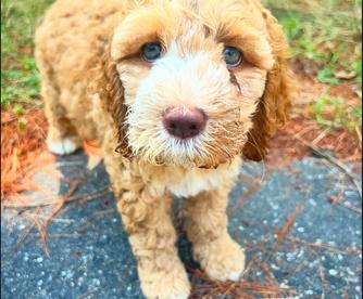 Shandy is a female Cockapoo. Carefully selected as a great representative of her breed, Megan decided to make her part of their program. Megan has passed Good Dog’s screening process, which involved a review of their breeding practices, environment, and the mental and physical health of their dogs.