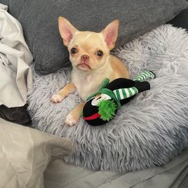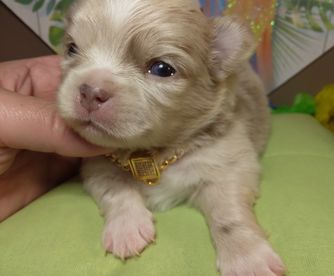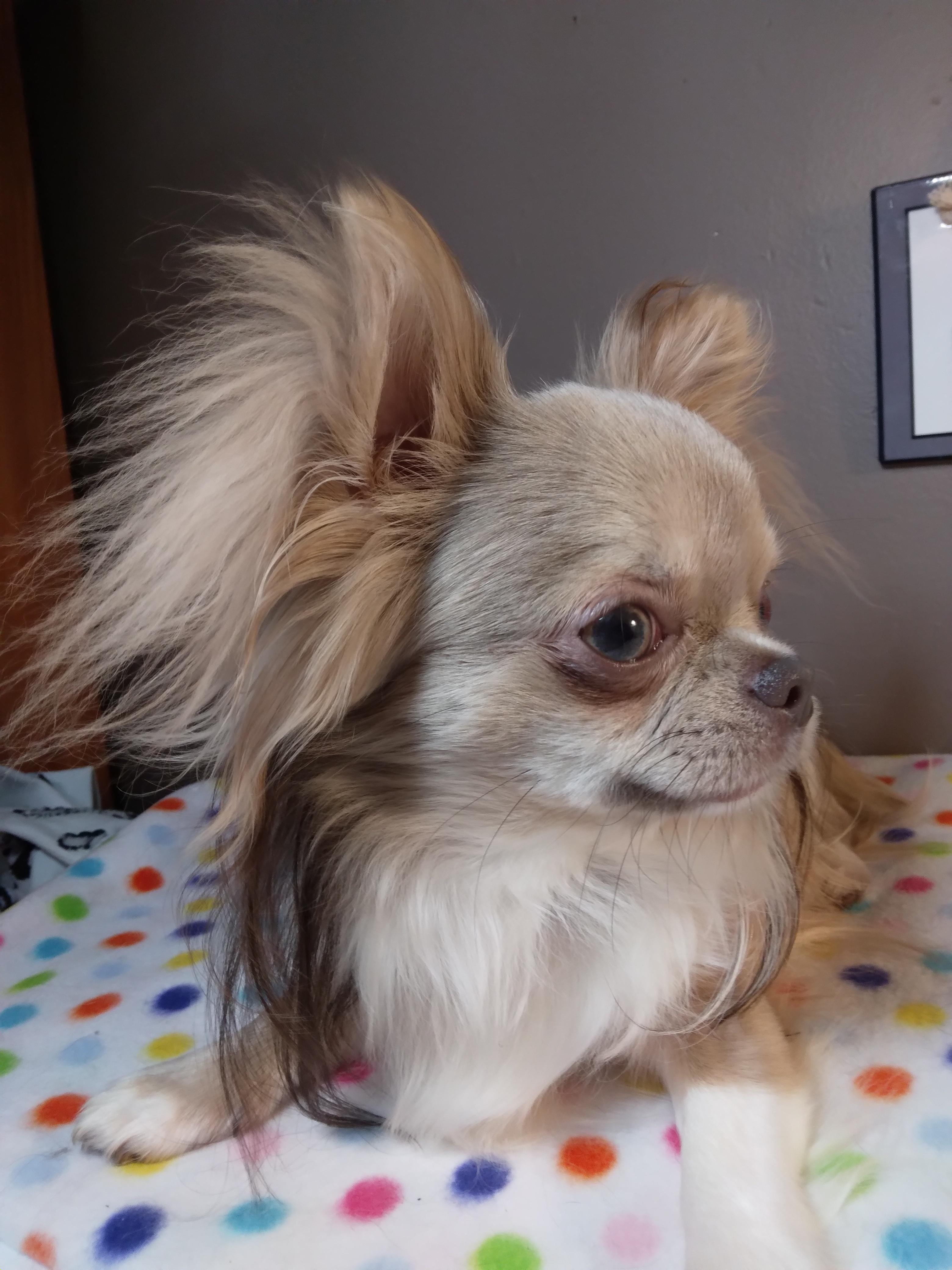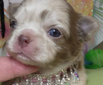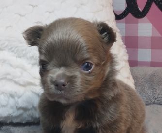 After suddenly losing my 11 year old rescue chihuahua, I knew that I needed to find a chihuahua who had a sweet temperament, and was properly raised from a reputable breeder. Then I found Susan with Grace & Glory Chihuahuas! The minute I saw Moose’s face on the website, I knew he had to be my new baby! Susan was truly a pleasure with to work with, communicating with me with photos and videos of my little chocolate Moose! I appreciated Susan’s commitment to handing over a properly socialized, healthy and happy puppy, and my little Moose is an absolute dream dog! He’s sweet, affectionate, healthy and happy. He loves his dog friends, and our daily walks in the park. Moosie gives the sweetest kisses, and having him in our lives is a joy!