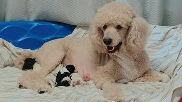 Bo is a male Poodle. Carefully selected as a great representative of his breed, Jenee decided to make him part of their program. Jenee has passed Good Dog’s screening process, which involved a review of their breeding practices, environment, and the mental and physical health of their dogs.
