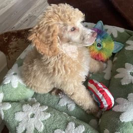Vicki was so easy to work with when we found our pup. She responded quickly and answered all our questions thoroughly. Vicki has a great kennel set up and all pups seem happy healthy and well taken care of. Our pup has been a wonderful addition to our home. We are so amazed at how quickly he learns things! Anyone considering a poodle would be wise to talk to Vicki, her pups are healthy and adorable! Sarah