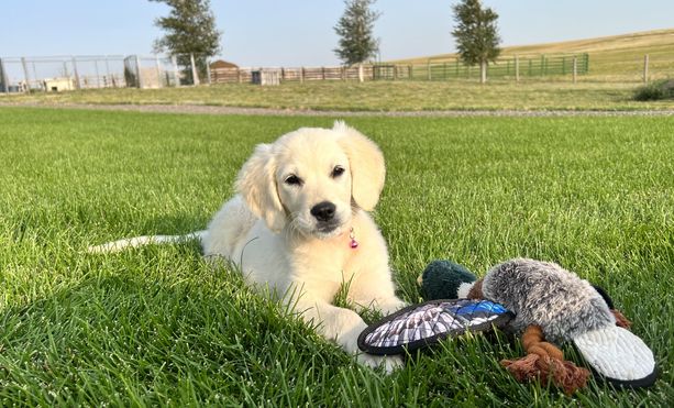 I'm Kim S., the breeder behind Grace Skye Goldens located in Auora, CO. Our dogs are bred for health, temperament, and intelligence. We strive to produce the best overall pets and family members. Our puppies are raised with love in our home, and we strive to help each one grow up with confidence so they are ready to thrive with their new families. They are affectionate, intelligent, and cute as can be!