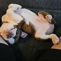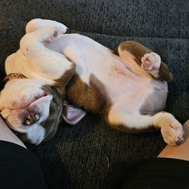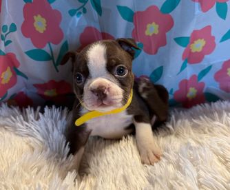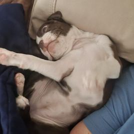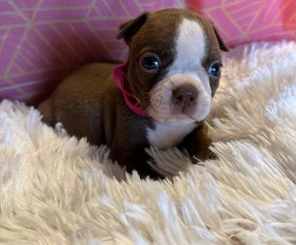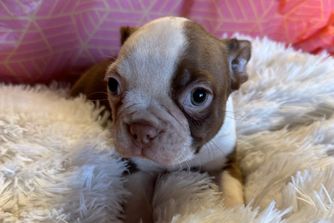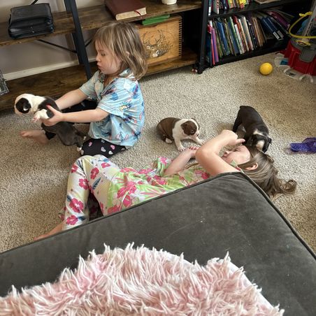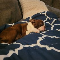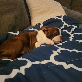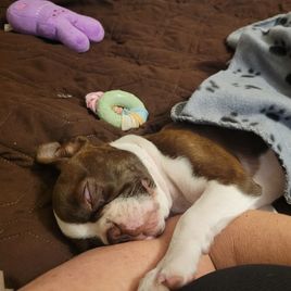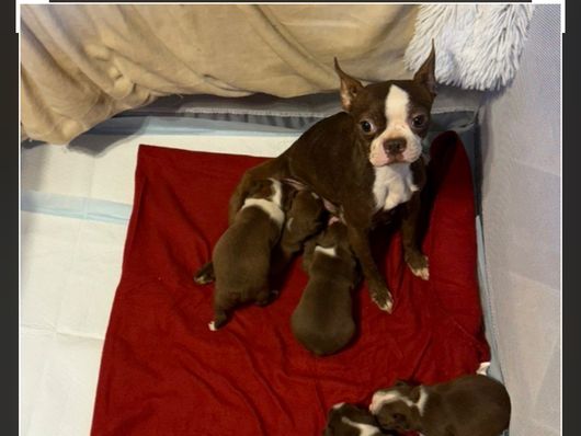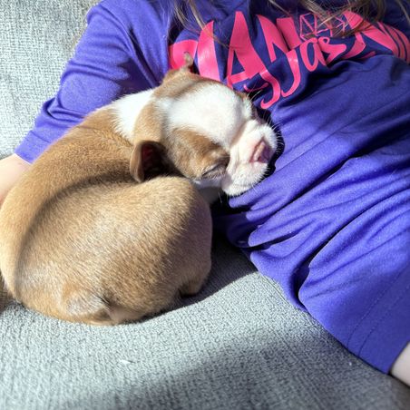 All of my Bostons are raised in the home with me. They are honestly living their best life. Scrambled eggs and rice in the mornings. Sleeping in the bed with me and praying they don’t let some of there smelly ole farts my way. Haha. Anyone that has ever bought a puppy from me has been more than satisfied.