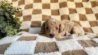 Ruthie is a sweetheart! She is a gentle and loving Micro Goldendoodle. She is fully grown at only 9 pounds.