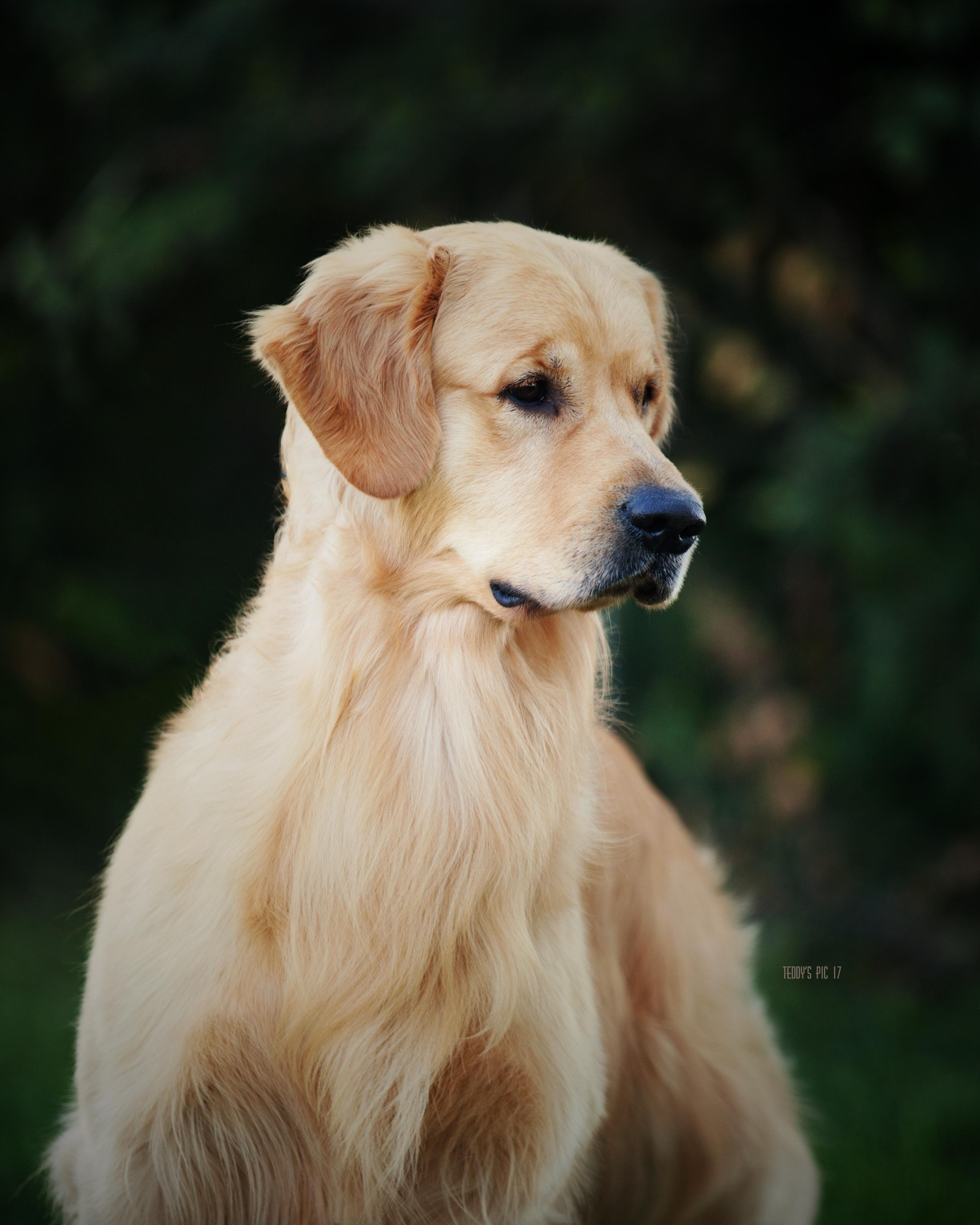 June is a wonderful family dog and companion. Her gentle, loving temperament and strong maternal instinct are some of her most notable qualities. She is very observant and eager to please. June has a sweet face and soft expression. She is well-balanced, has a beautiful golden coat with some wave and moves smoothly through her gait.