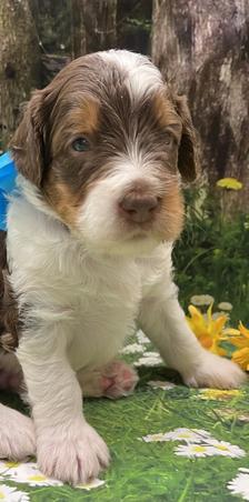 Faith is a sweet F1b parti Goldendoodle. She loves naps on the couch and soaking her feet in the pool.
