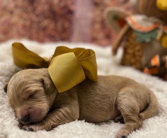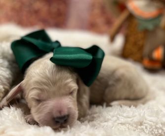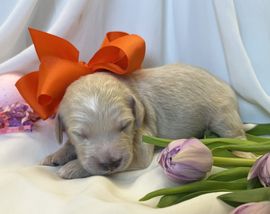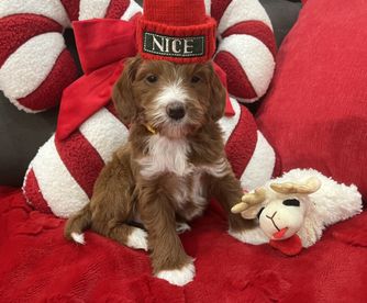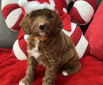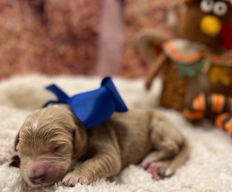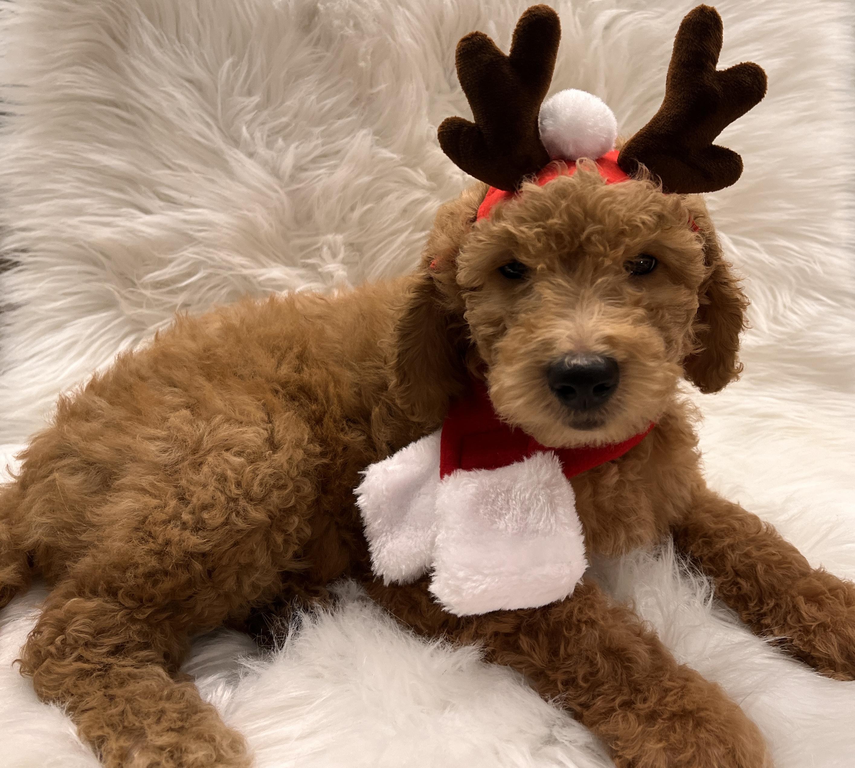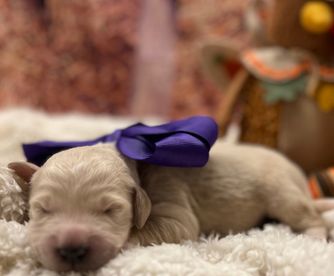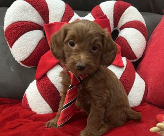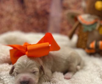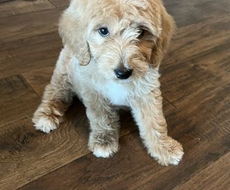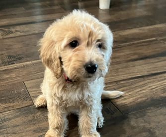 Sam is a super sweet and smart little Goldendoodle puppy. He is doing great on potty training and sleeps through the night.