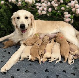 Clover is a female Golden Retriever. Carefully selected as a great representative of her breed, Kristin decided to make her part of their program. Kristin has passed Good Dog’s screening process, which involved a review of their breeding practices, environment, and the mental and physical health of their dogs.