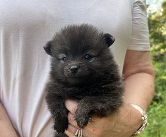 Our Dachshund puppies include chocolate and tan and gray (blue) and tan. Pomeranian puppies include cream sable and black and brindle. Colors will vary depending on the parent dogs.
