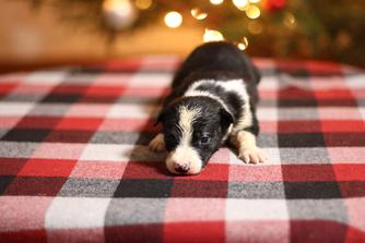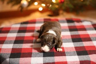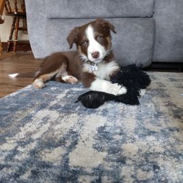 We picked our puppy (Arlo) up right at the 8-week mark and since then he's been great! Arlo has been the best dog we could've ever imagined and is so much fun! He loves car rides, meeting every person he sees, and playing with all the neighbor dogs! He has already proven how smart he is with how quickly he has picked up commands, how he figured out to coerce belly rubs out of us nonstop, and it only took him a few days to start ringing a bell when he needed to go outside. Jacob has been extremely helpful with advice on how to get him used to water and everything else we've asked him. He is very responsive and has been great to work with!