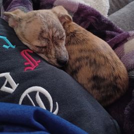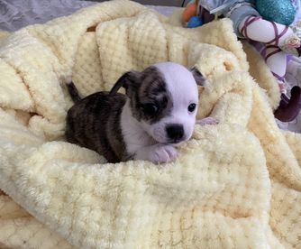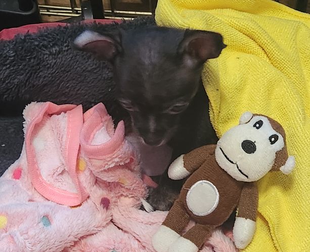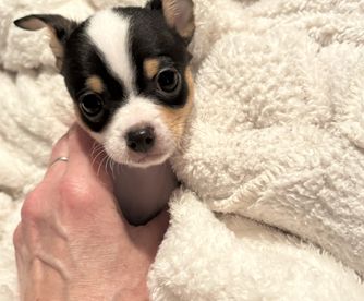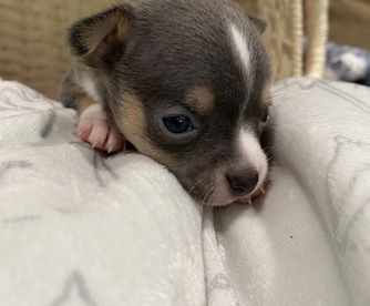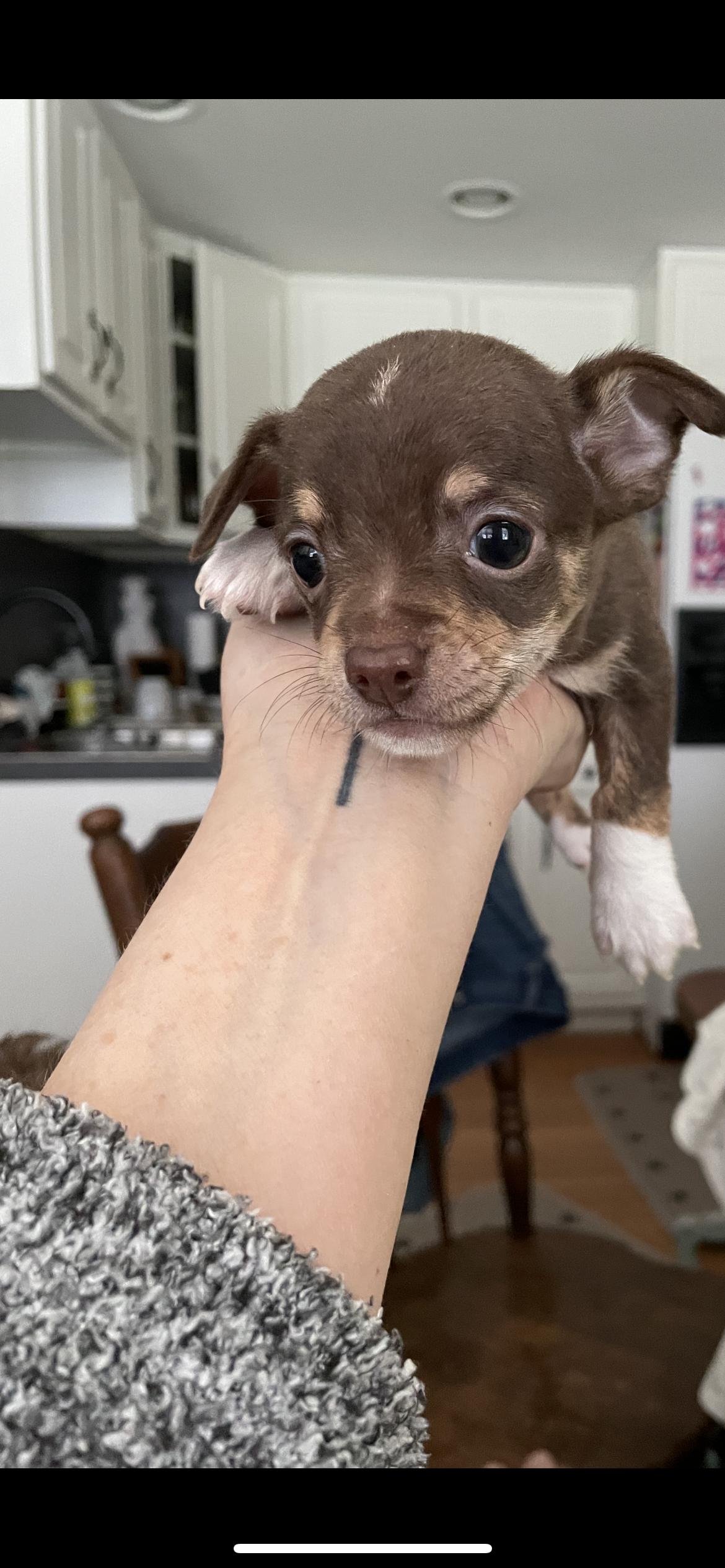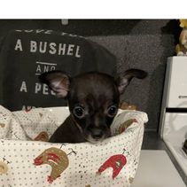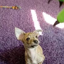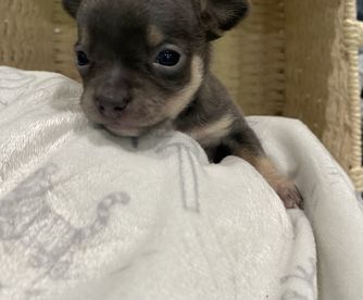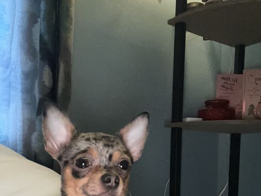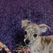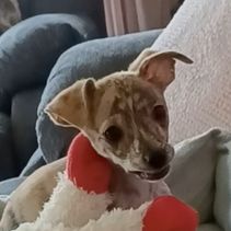 Polita is a goofy, sweet, loving lilac Merle teacup Chihuahua weighing about 4 1/2 pounds. She is AKC registered. She absolutely loves children, other dogs, cats and is a natural mama.