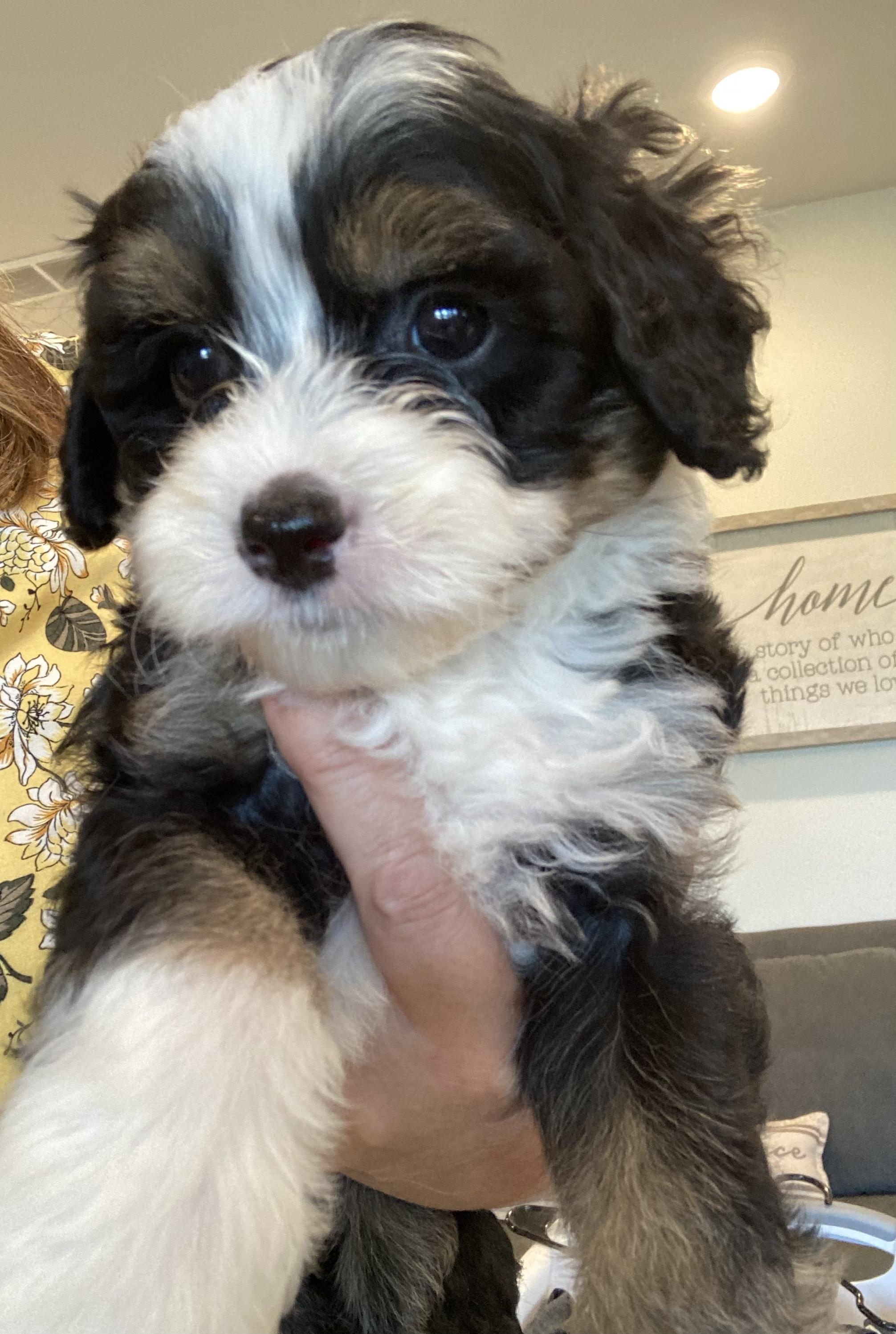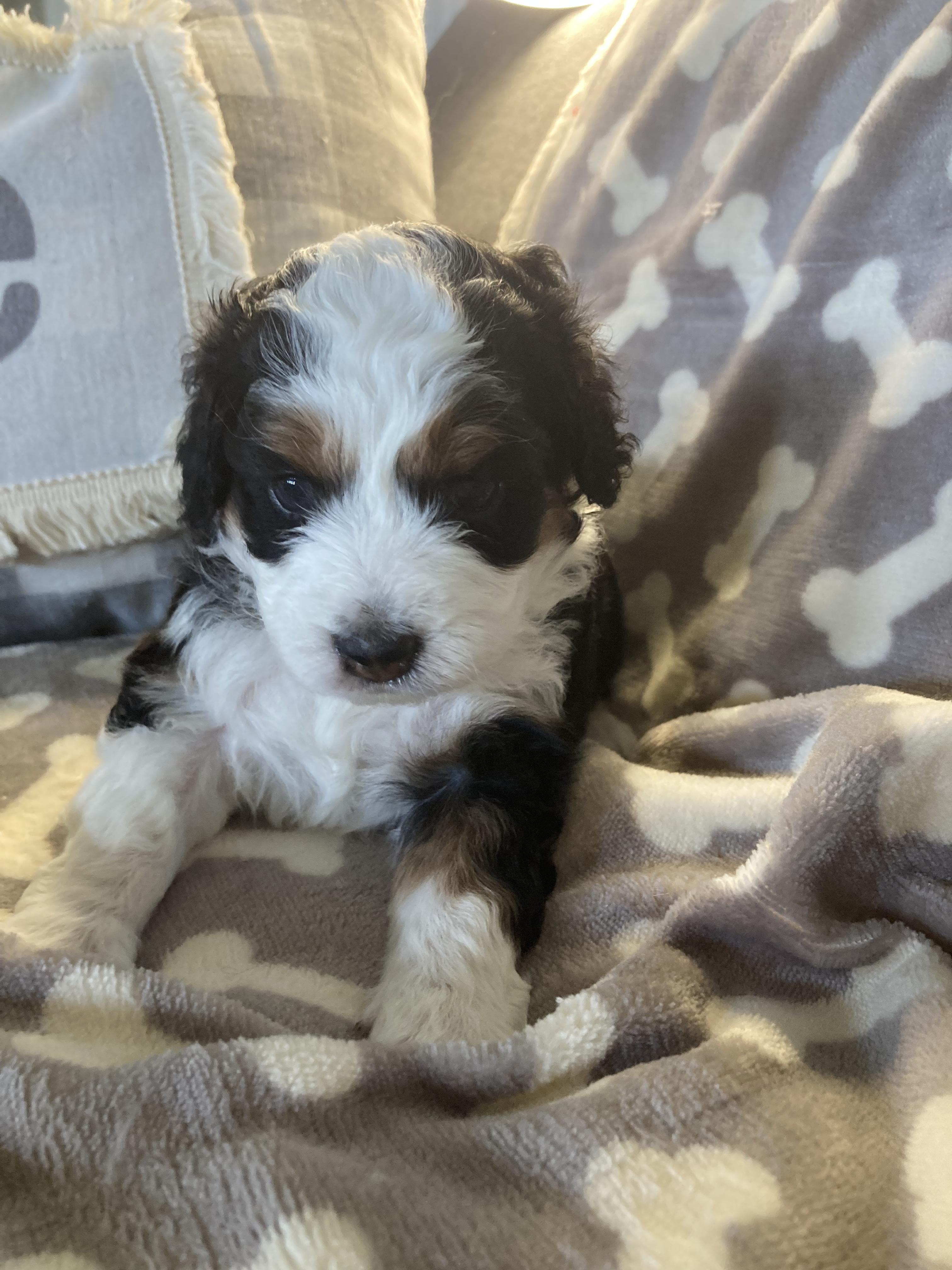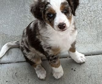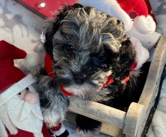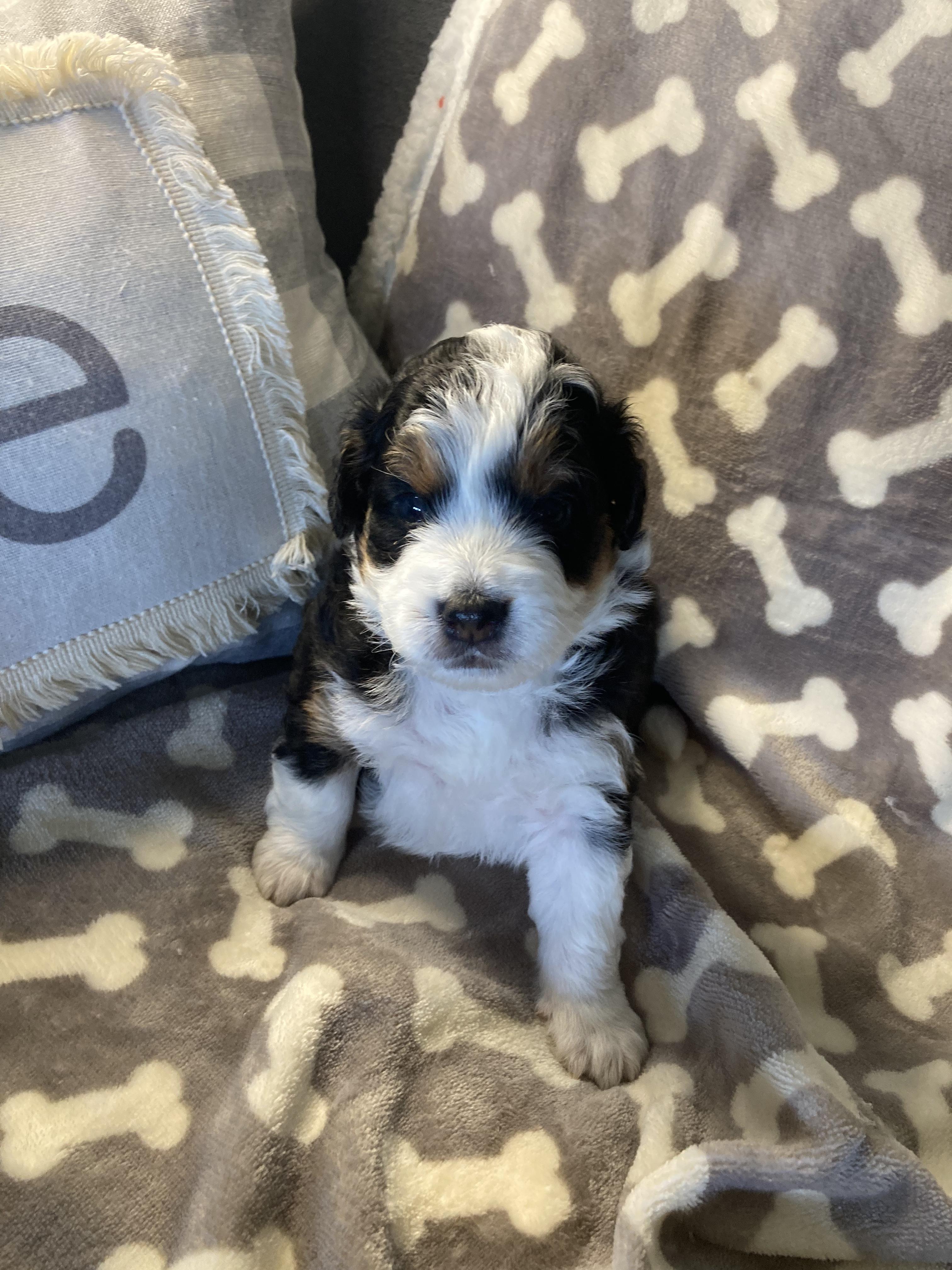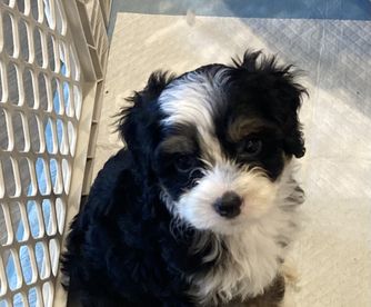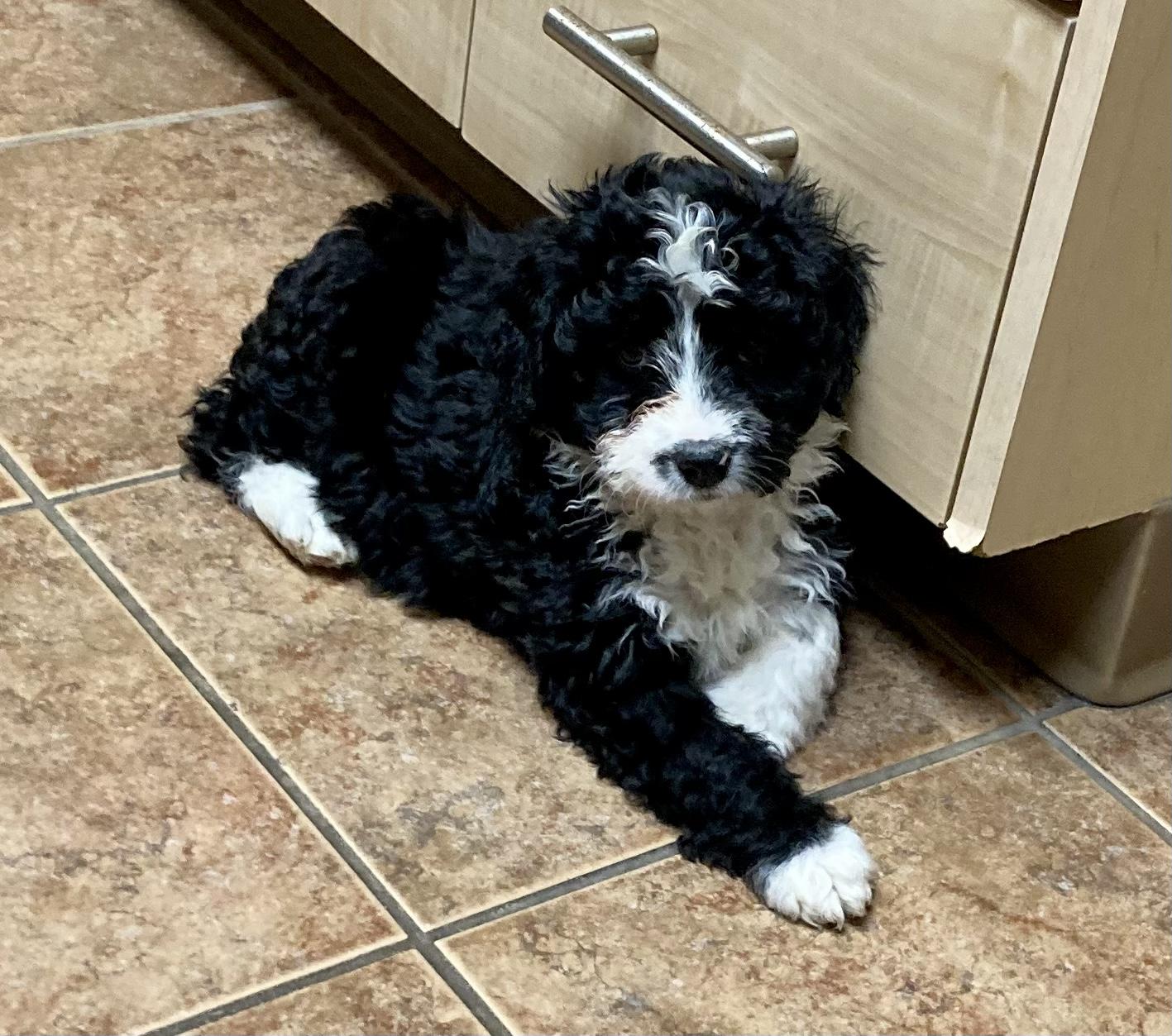 Our Bernedoodle puppies include sable, tri-color, and phantom. Aussiedoodle puppies include blue merle, red merle, black and white, black tri-color, and red tri-color. Colors will vary depending on the parent dogs.