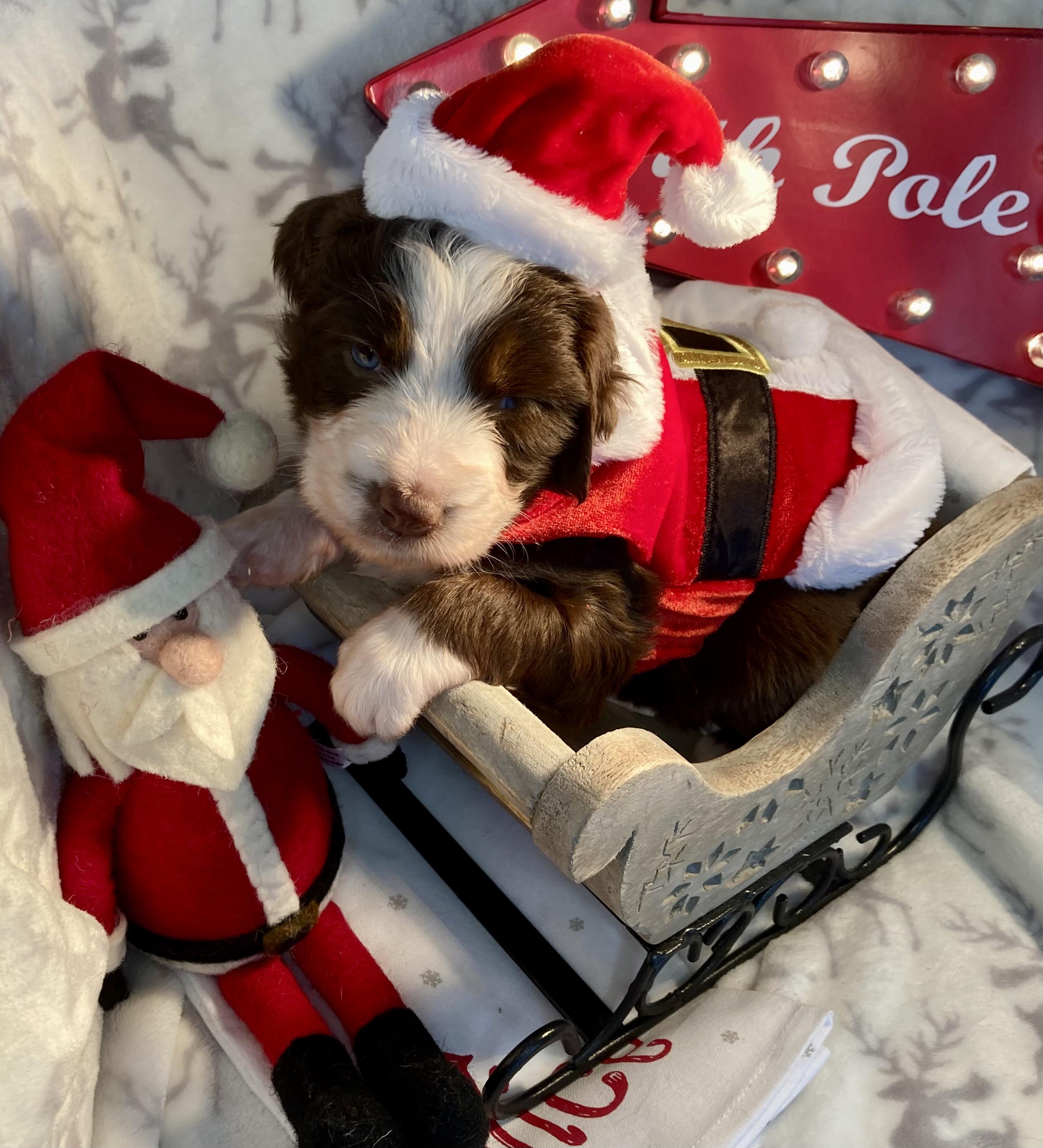 We’ve always had animals in our lives and my husband’s family raised and showed dogs and horses! We started out with having a few litters of Australian Shepherds just for the love of the breed. Then one day I met an Aussiedoodle! Love at first sight! I decided then I wanted to have a very small breeding business. I researched, met with other breeders and started learning about genetic testing!
