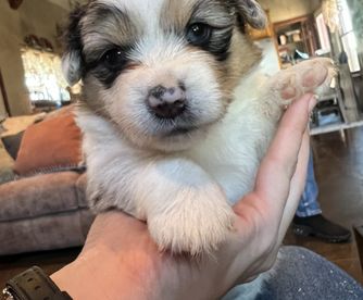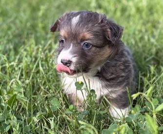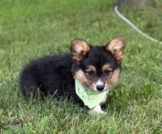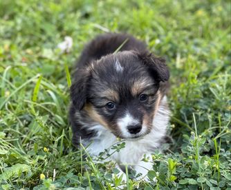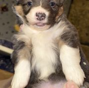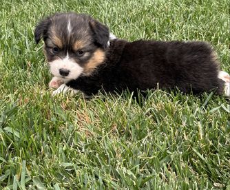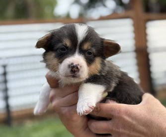 Our American Corgi puppies include blue merle and white and black and tan. Colors will vary depending on the parent dogs.