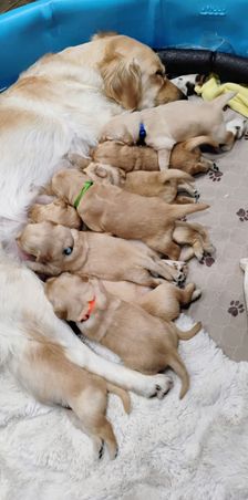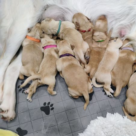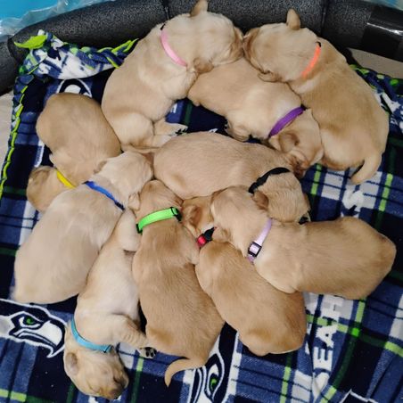 Our puppies include golden and light golden. Colors will vary depending on the parent dogs.