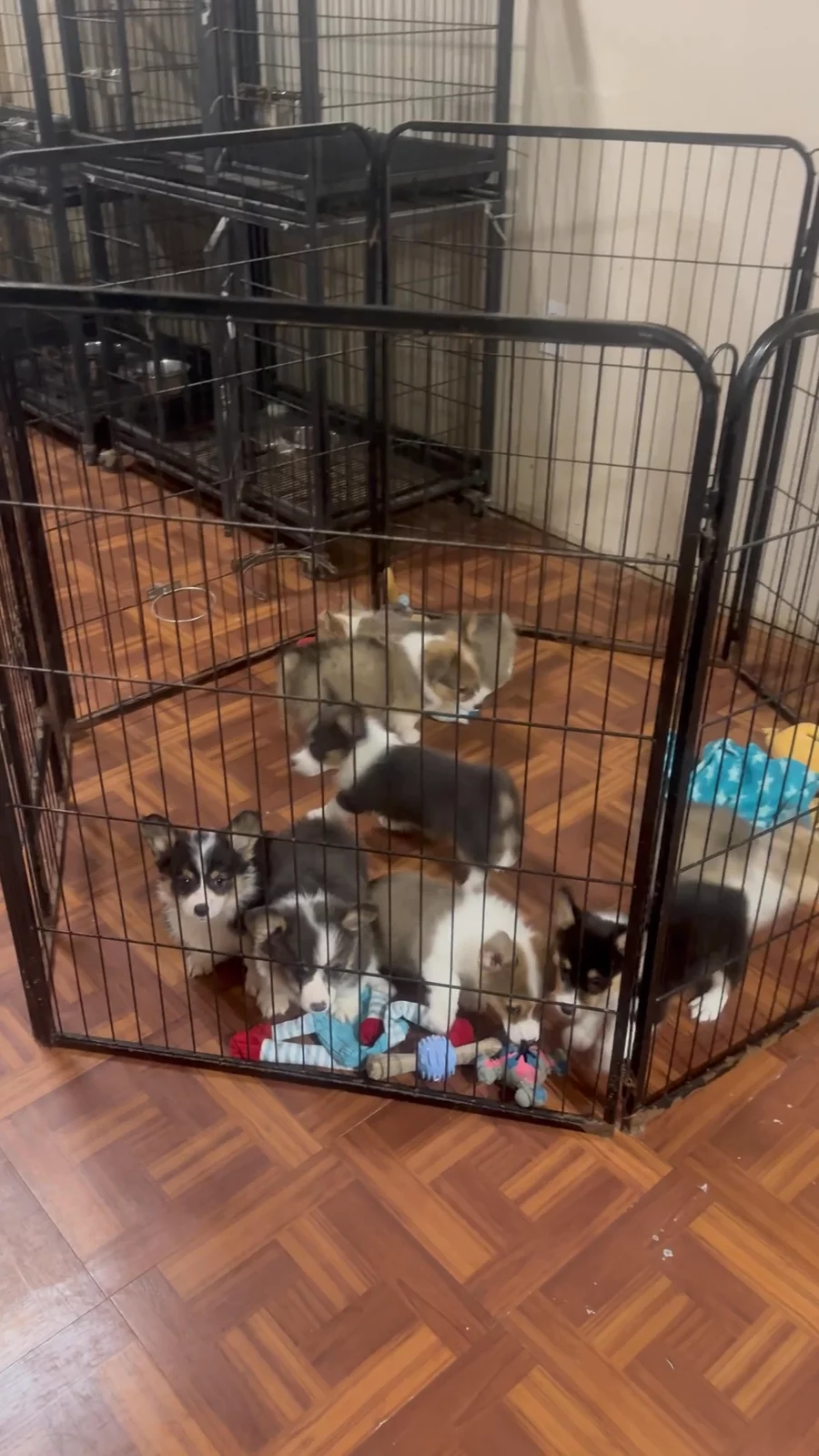 Working Dog Cross puppies include black and tan, sable, and blue. Toy Australian Shepherd puppies include black tri, blue merle, red merle, and red tri. Pembroke Welsh Corgi puppies are sable. Miniature Australian Shepherd puppies include blue merle, black tri, red tri, and red merle. Colors will vary depending on the parent dogs.