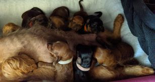 Our puppies include red, wild boar, and black and tan. Colors will vary depending on the parent dogs.