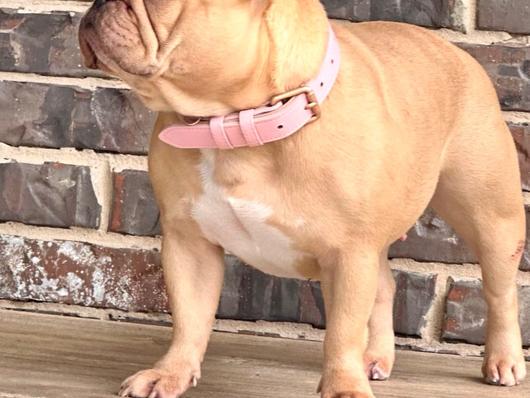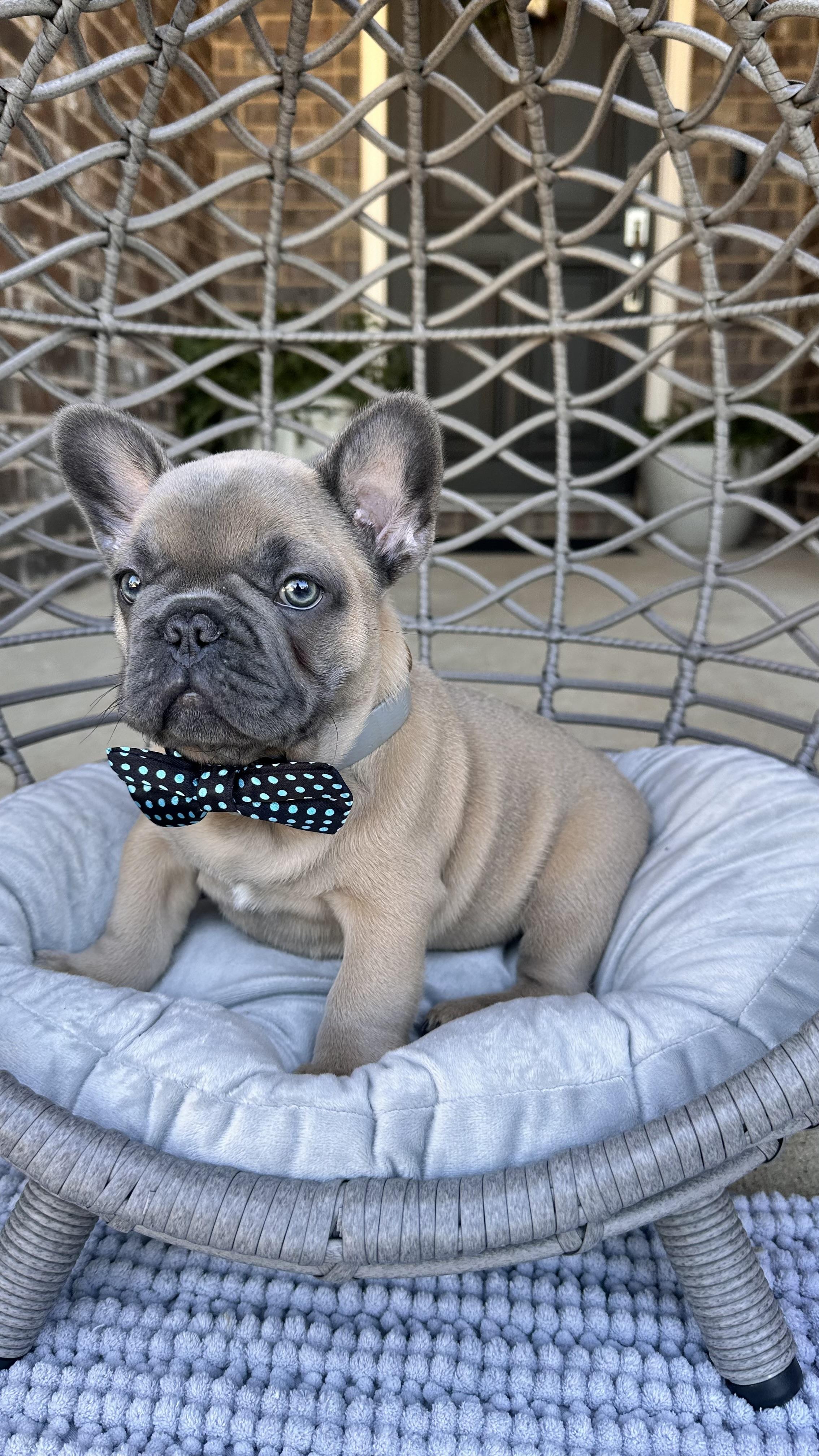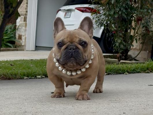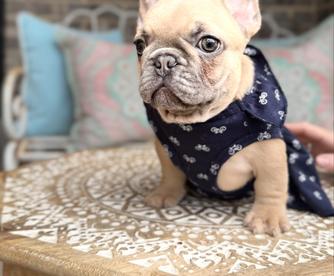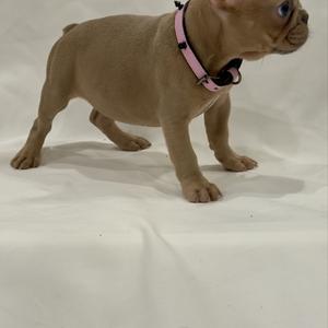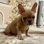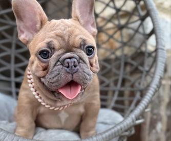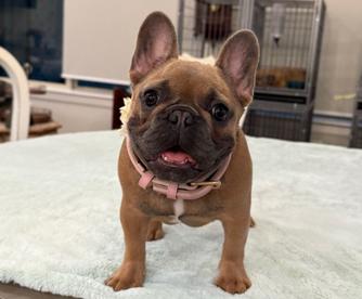 "Molly has the sweetest personality — always ready to please, playful, and full of love! We couldn’t ask for a more perfect girl. She’s our gorgeous Coco Fawn beauty, and we’re so proud to have her as part of our Grandiose Frenchies program!