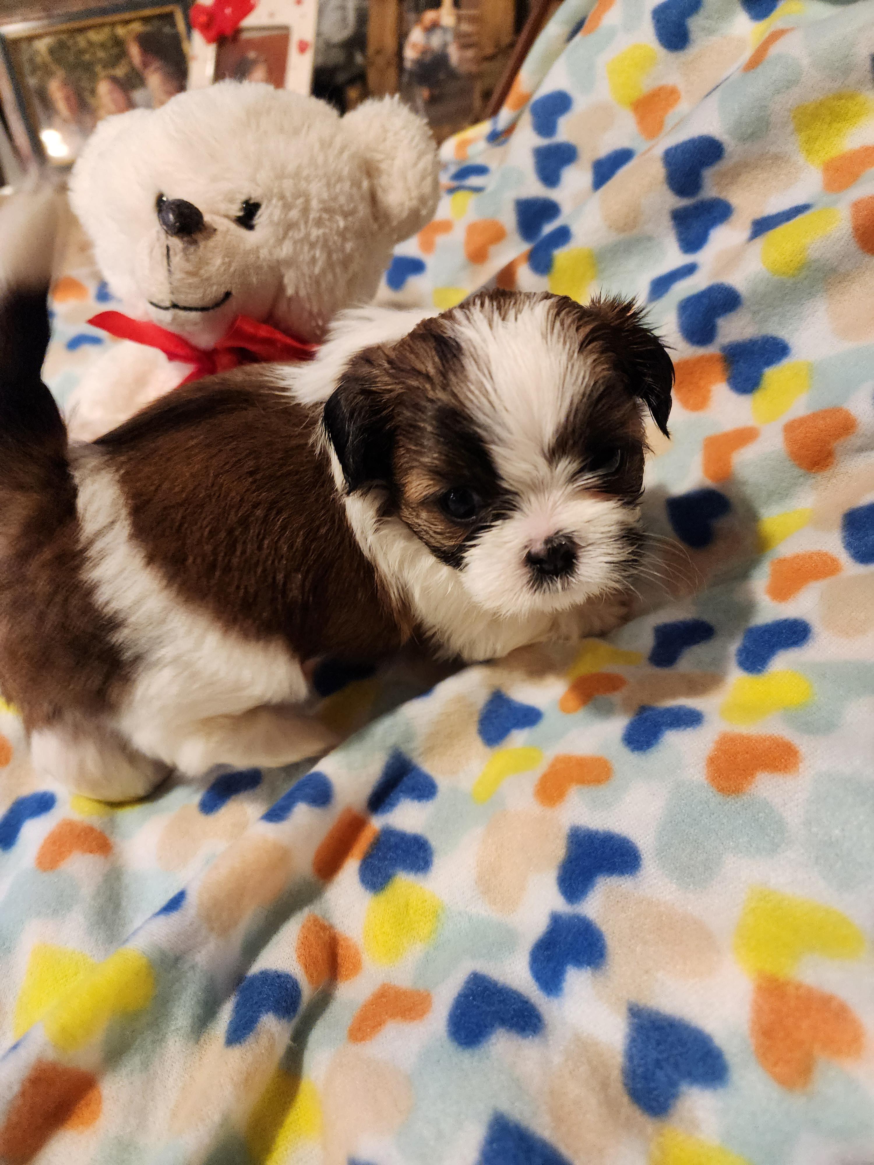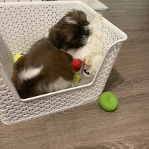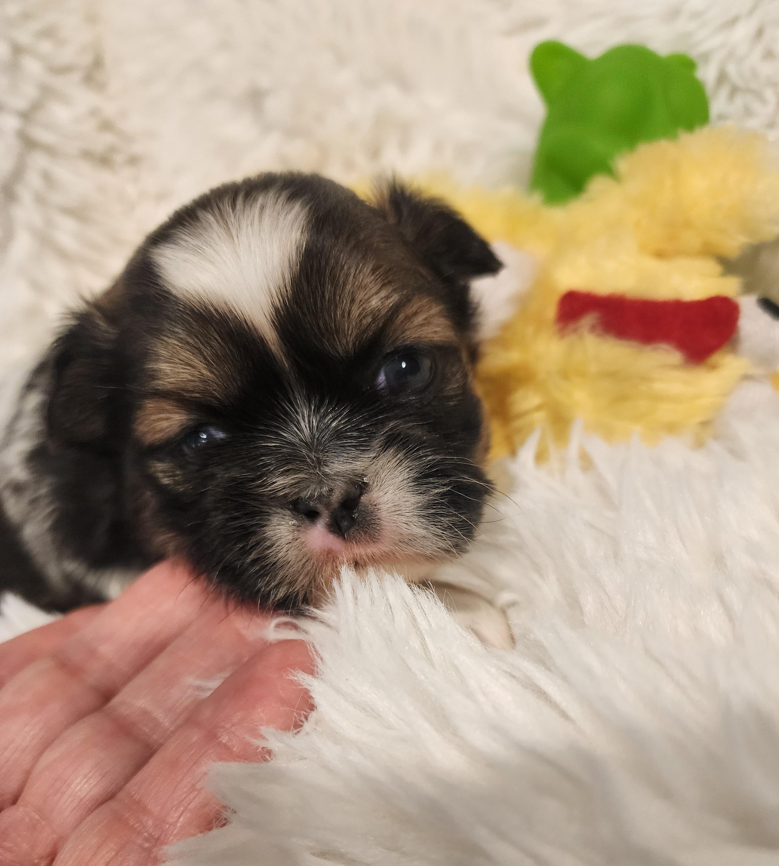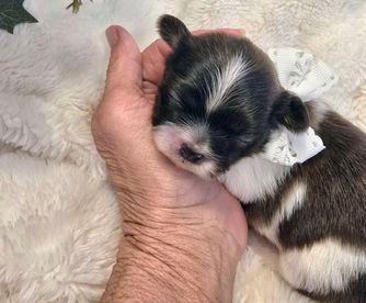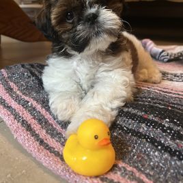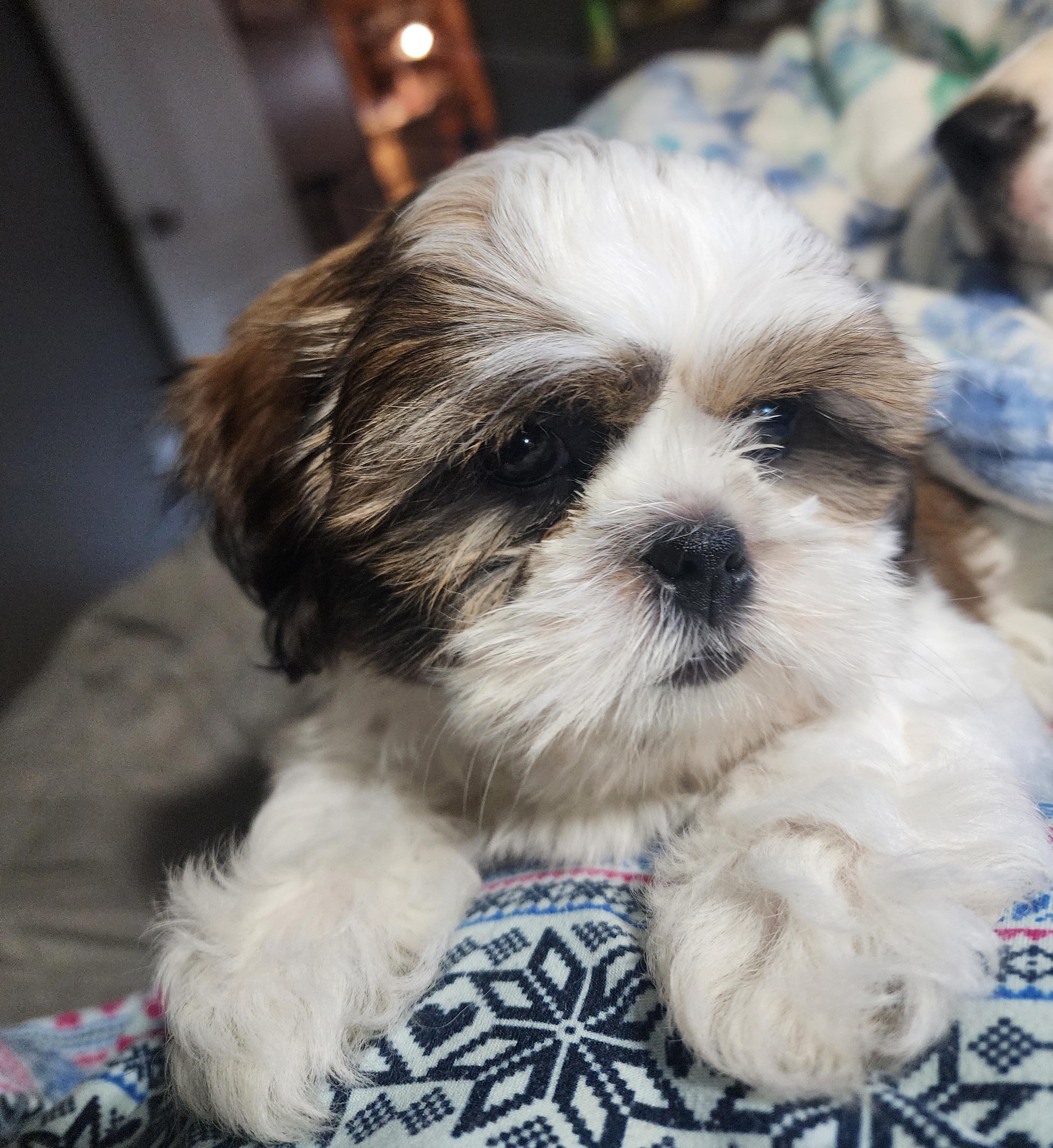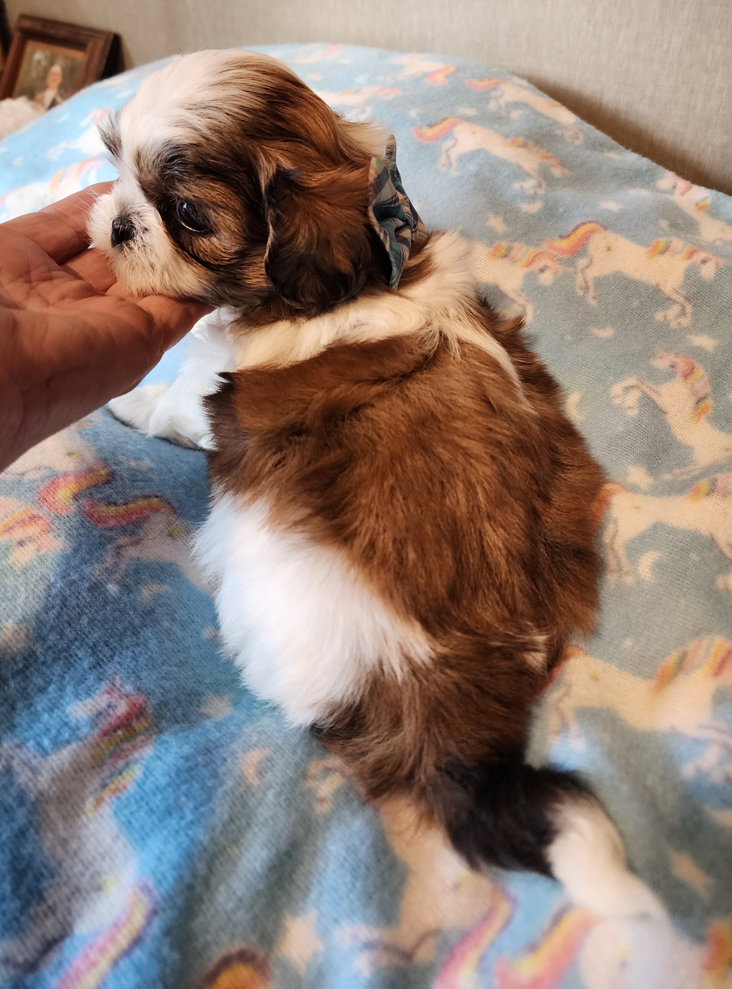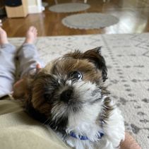 I wanted to have the Shih Tzu experience. I have had two of the other Tibetan breeds before and enjoyed the experience. Teresa is great! When I first started my search I was surprised what I was looking for was practically in my own backyard. She had a black coated male puppy available so I reached out to her and we established a time to meet the following Saturday. She is a very nice lady and knows her dogs 🐕 I got acquainted with Merlin the puppy and he was sweet and very healthy. Needless to say I was sold on him. He is now at home here with our family and it wasn’t long before the other dogs welcomed him into the fold. My mix Chi and he are now best play friends. I’ve already started leash training and he’s learning quickly. Potty training is 75/25 only a few oops. Overall he’s a really wonderful little guy and we all love him. Thank you Teresa for knowing your business of breeding healthy happy dogs, I certainly appreciate it! So anyone interested in adding a Shih Tzu to your family rest assured you will be getting a wonderful dog that is in very good health.
