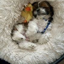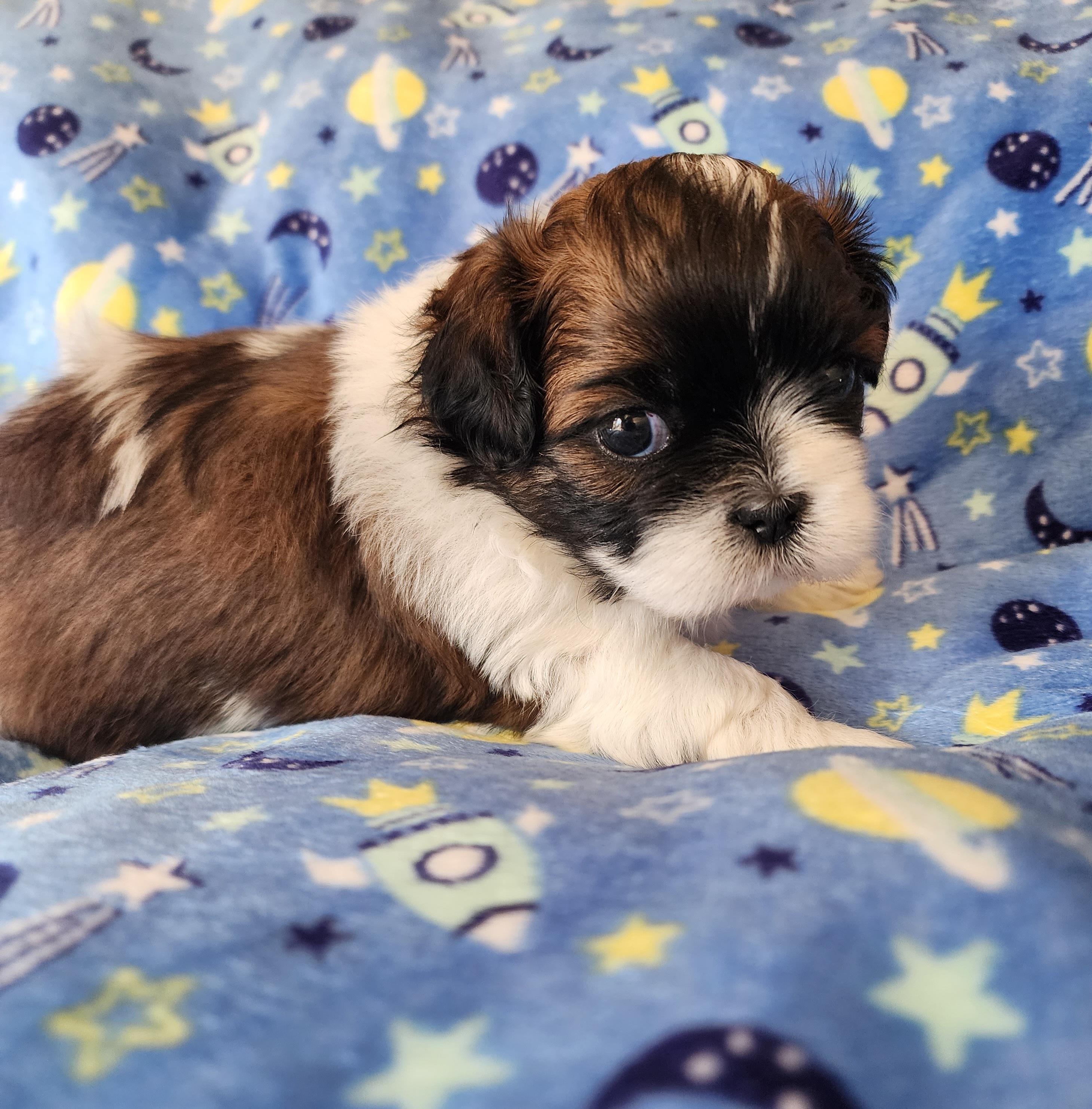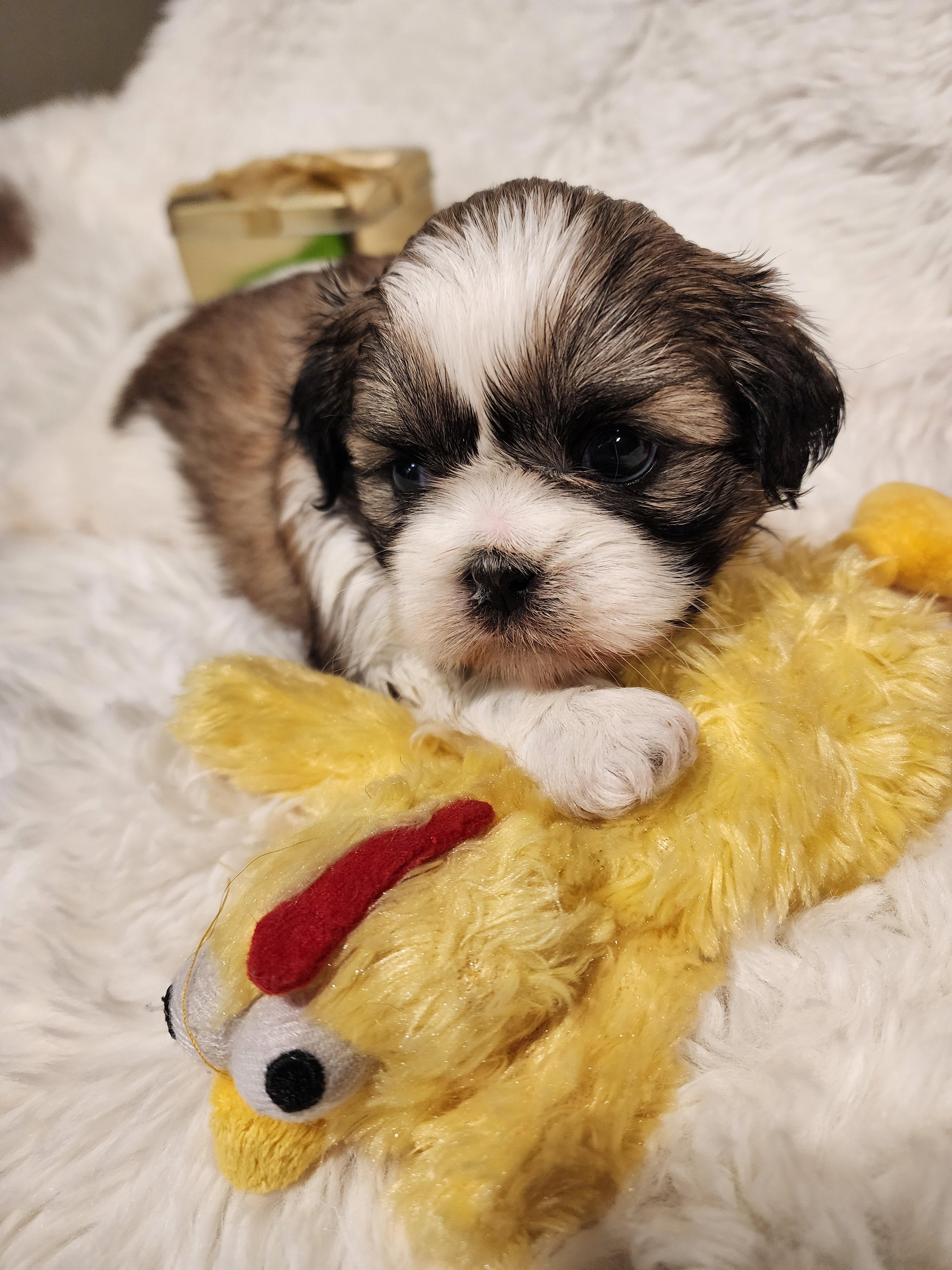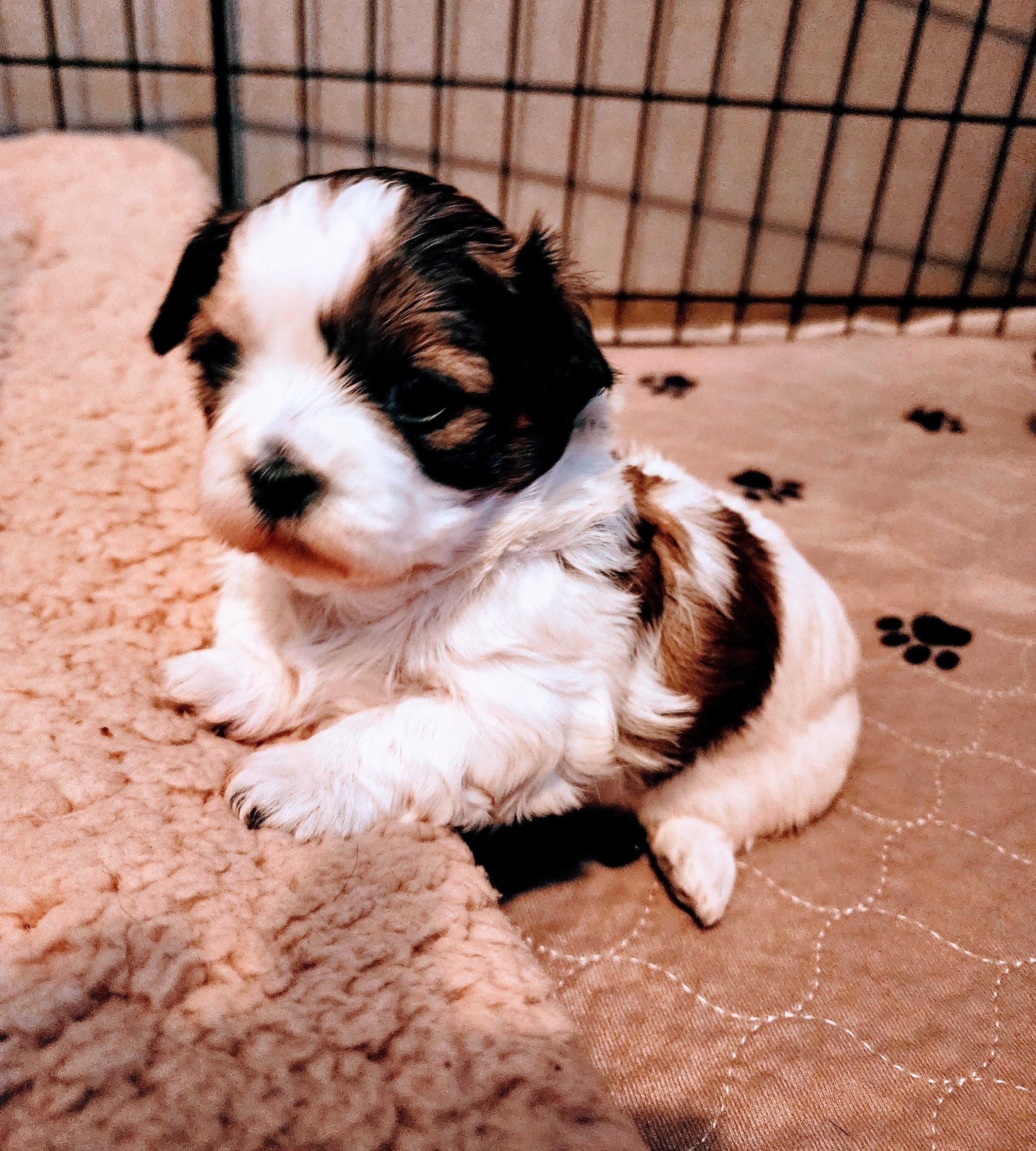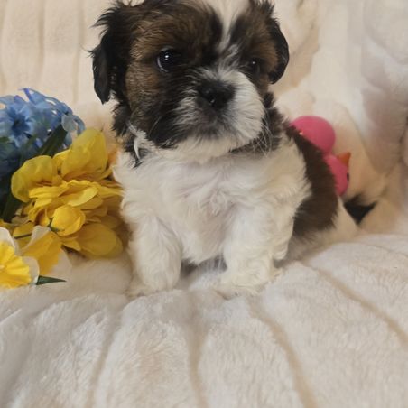 I wanted to have the Shih Tzu experience. I have had two of the other Tibetan breeds before and enjoyed the experience. Teresa is great! When I first started my search I was surprised what I was looking for was practically in my own backyard. She had a black coated male puppy available so I reached out to her and we established a time to meet the following Saturday. She is a very nice lady and knows her dogs 🐕 I got acquainted with Merlin the puppy and he was sweet and very healthy. Needless to say I was sold on him. He is now at home here with our family and it wasn’t long before the other dogs welcomed him into the fold. My mix Chi and he are now best play friends. I’ve already started leash training and he’s learning quickly. Potty training is 75/25 only a few oops. Overall he’s a really wonderful little guy and we all love him. Thank you Teresa for knowing your business of breeding healthy happy dogs, I certainly appreciate it! So anyone interested in adding a Shih Tzu to your family rest assured you will be getting a wonderful dog that is in very good health.