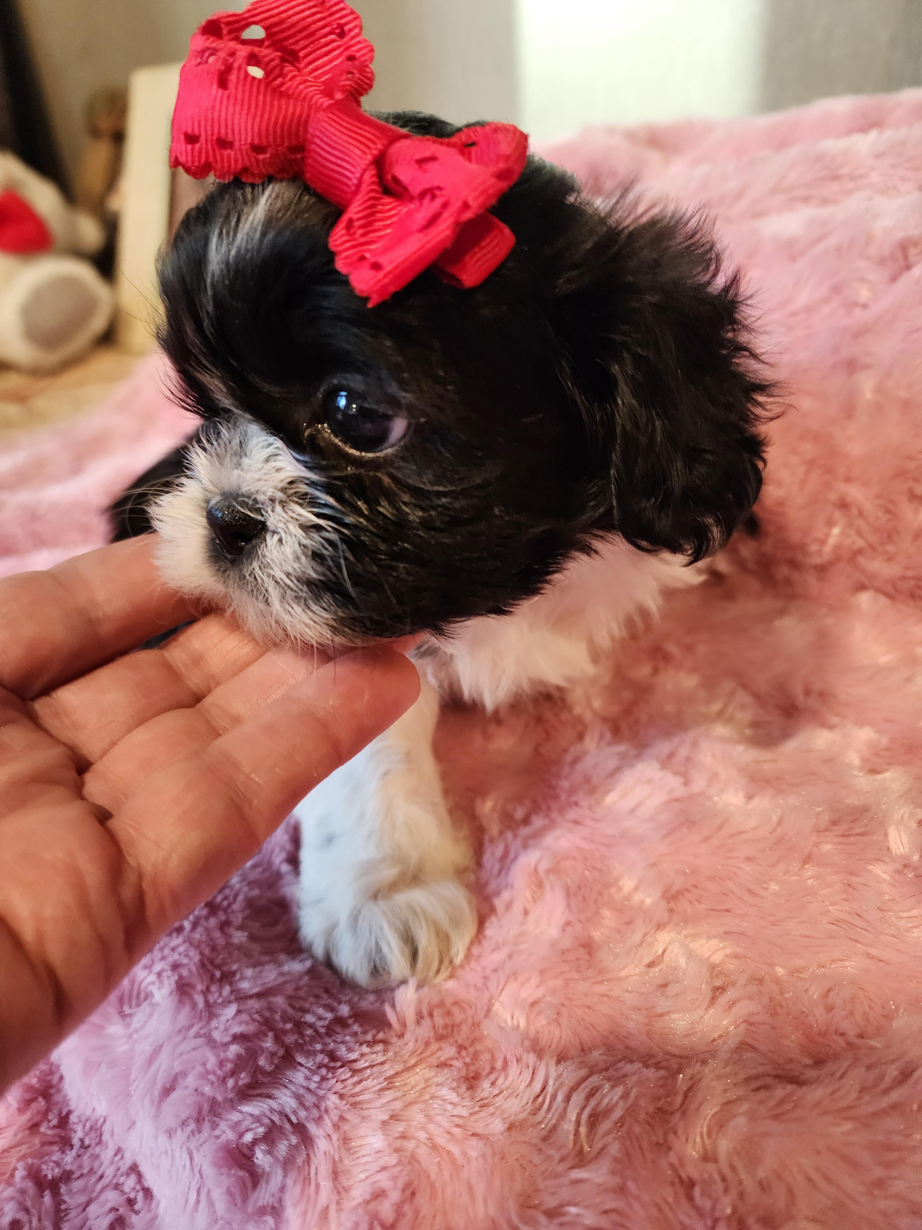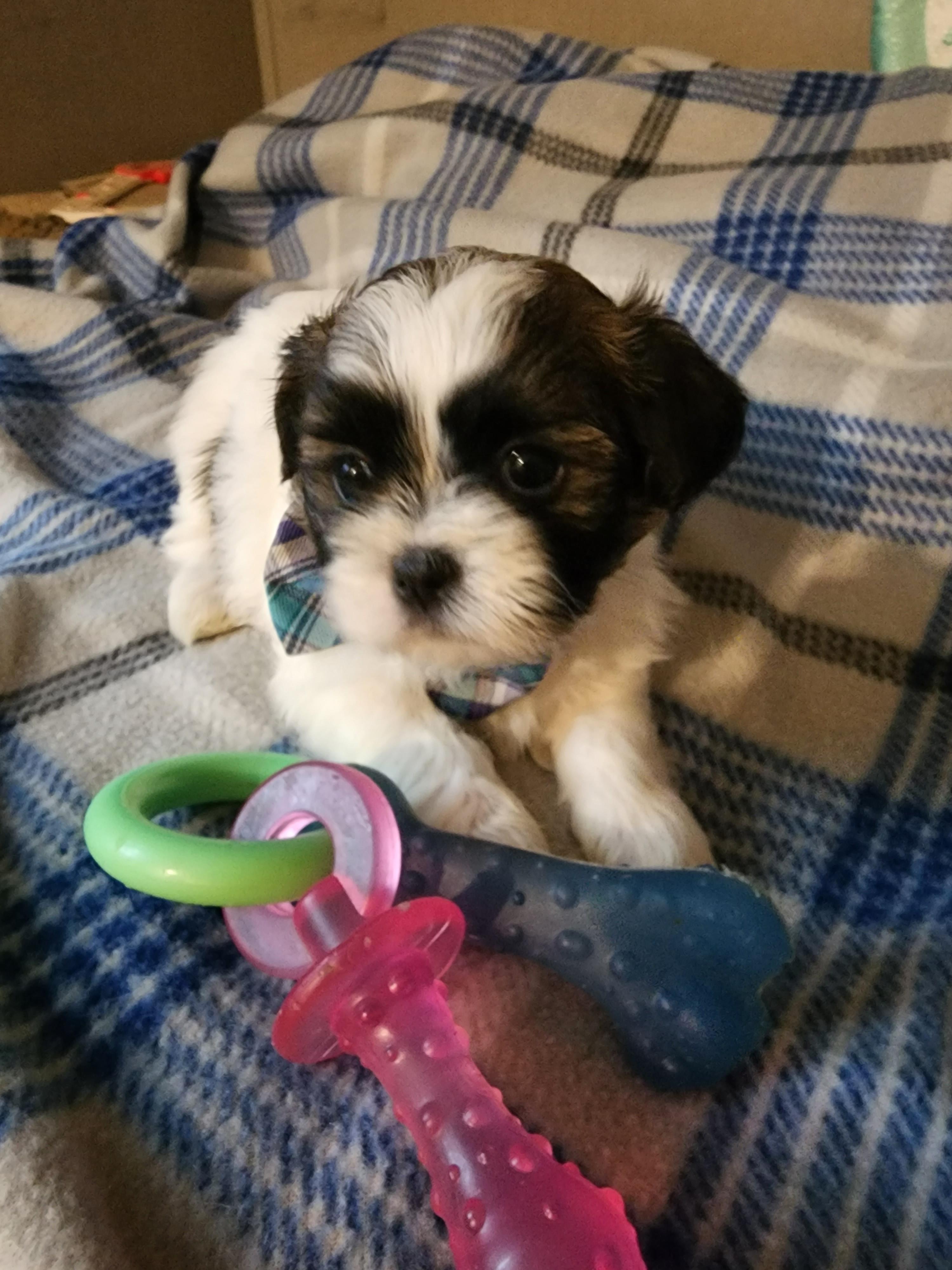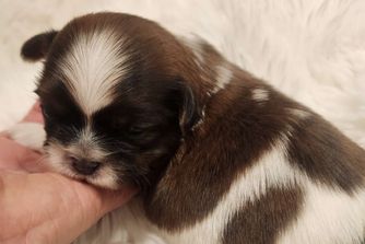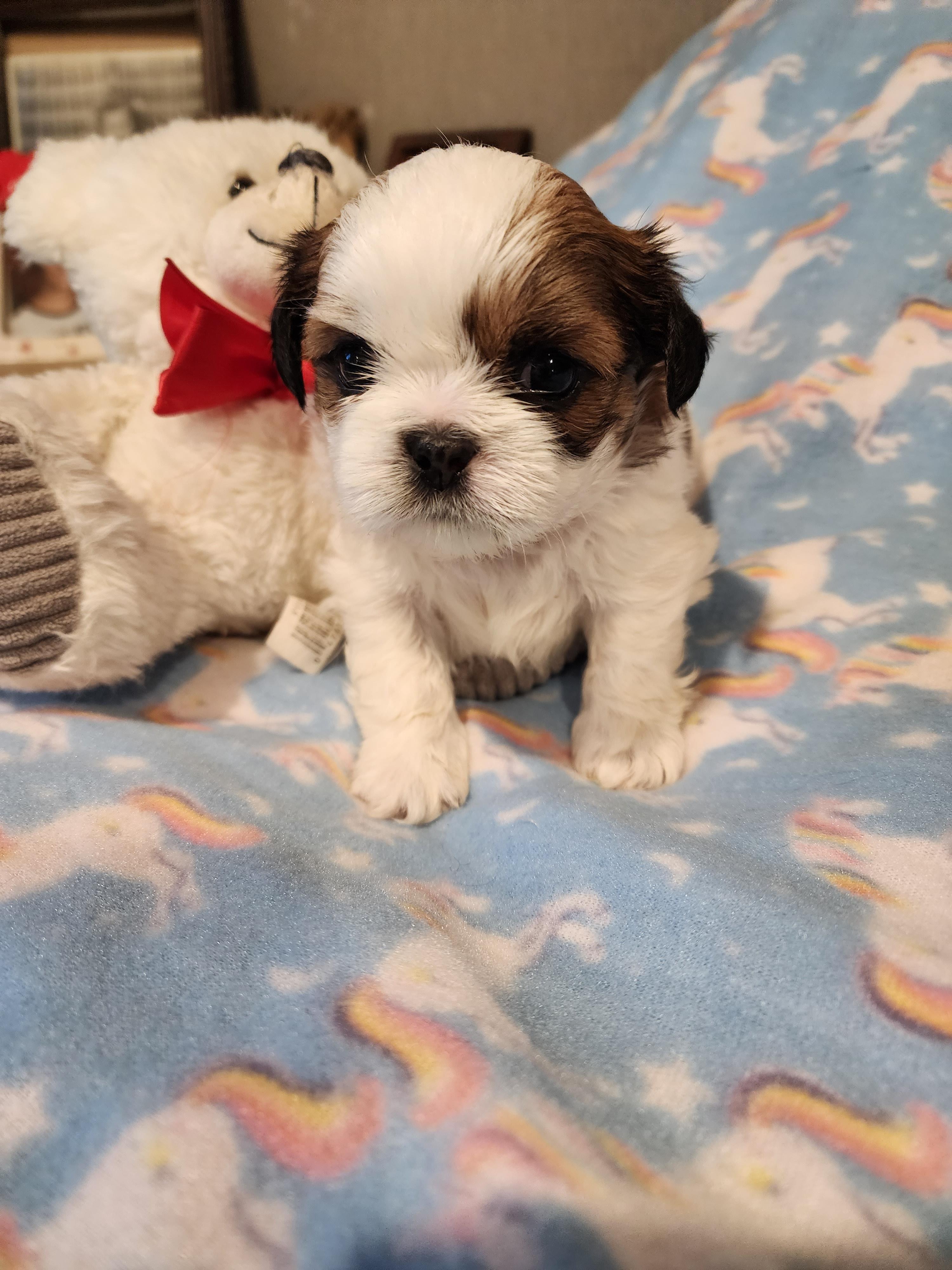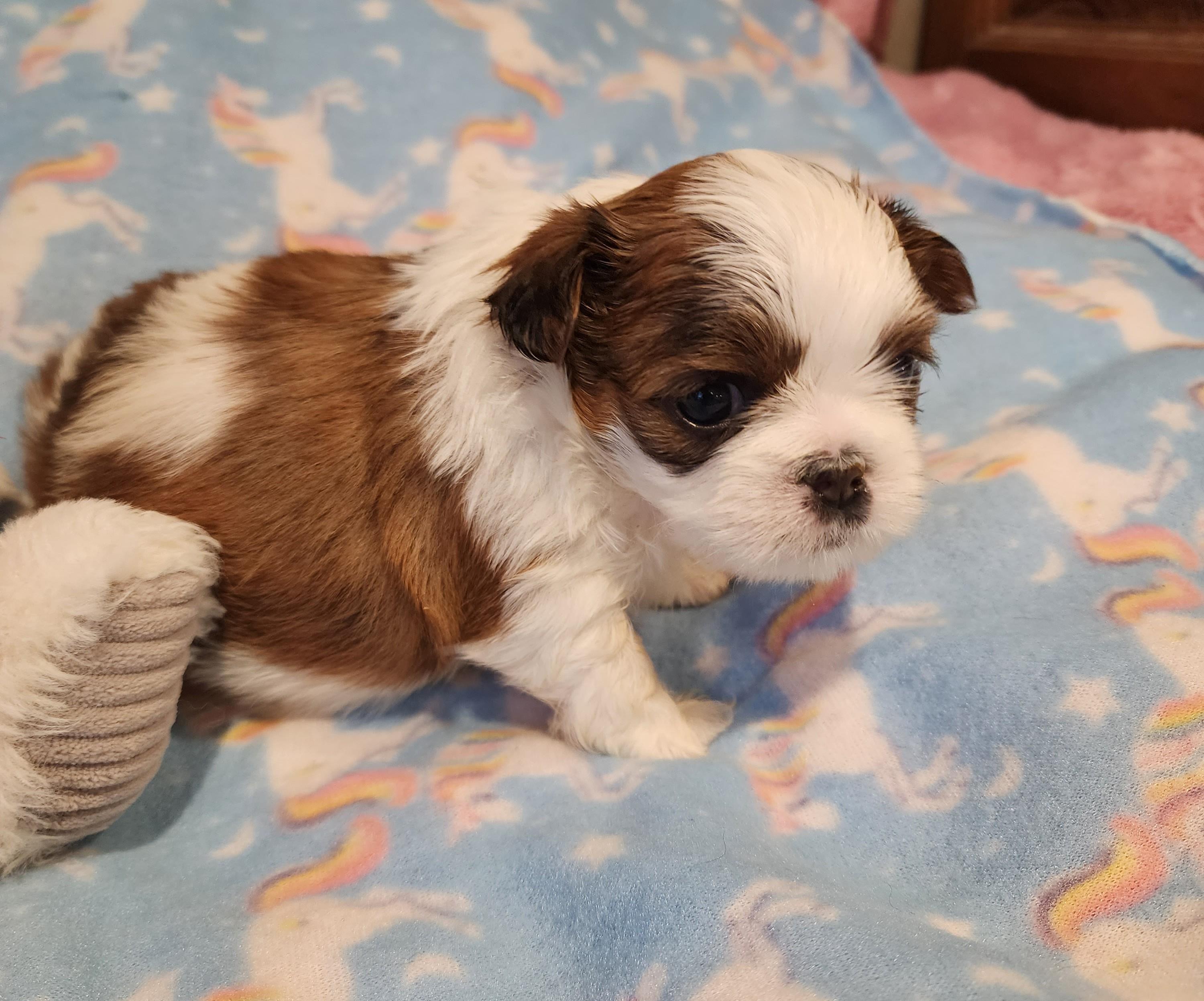 I wanted to have the Shih Tzu experience. I have had two of the other Tibetan breeds before and enjoyed the experience. Teresa is great! When I first started my search I was surprised what I was looking for was practically in my own backyard. She had a black coated male puppy available so I reached out to her and we established a time to meet the following Saturday. She is a very nice lady and knows her dogs 🐕 I got acquainted with Merlin the puppy and he was sweet and very healthy. Needless to say I was sold on him. He is now at home here with our family and it wasn’t long before the other dogs welcomed him into the fold. My mix Chi and he are now best play friends. I’ve already started leash training and he’s learning quickly. Potty training is 75/25 only a few oops. Overall he’s a really wonderful little guy and we all love him. Thank you Teresa for knowing your business of breeding healthy happy dogs, I certainly appreciate it! So anyone interested in adding a Shih Tzu to your family rest assured you will be getting a wonderful dog that is in very good health.
