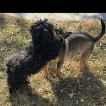 Jasmine is the sweetest little girl with a beautiful face. She is on the smaller side at 10 lbs. She loves to cuddle and also go outside and run with the big dogs😅