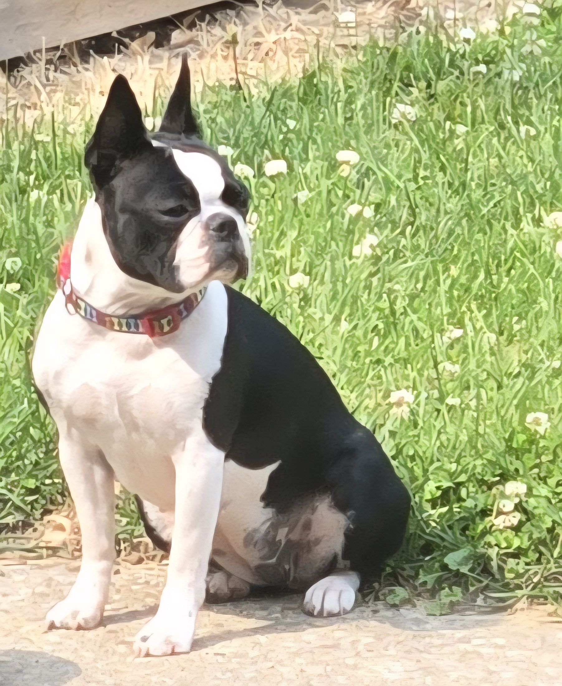 Murphy is a female Boston Terrier. Carefully selected as a great representative of her breed, Ruth decided to make her part of their program. Ruth has passed Good Dog’s screening process, which involved a review of their breeding practices, environment, and the mental and physical health of their dogs.
