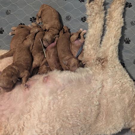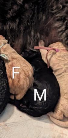 Born today, July 26th between 4:20 am & 9:09 am. 5 beautiful Cream, Apricot and Black puppies.