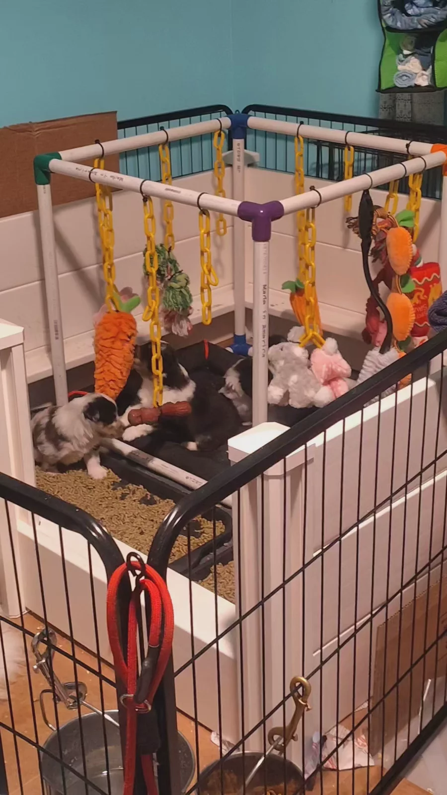 We are getting so big! We went to our first dog show today, as spectators, to cheer on our big sister Demi. We have 3 boys looking for their perfect forever homes. A bigger tri male, he's fairly reserved and calm, a minimal merle male who is the sweetest and most affectionate in the litter, and a small tri boy who has personality to spare! We love watching them grow and are enjoying our time with them.