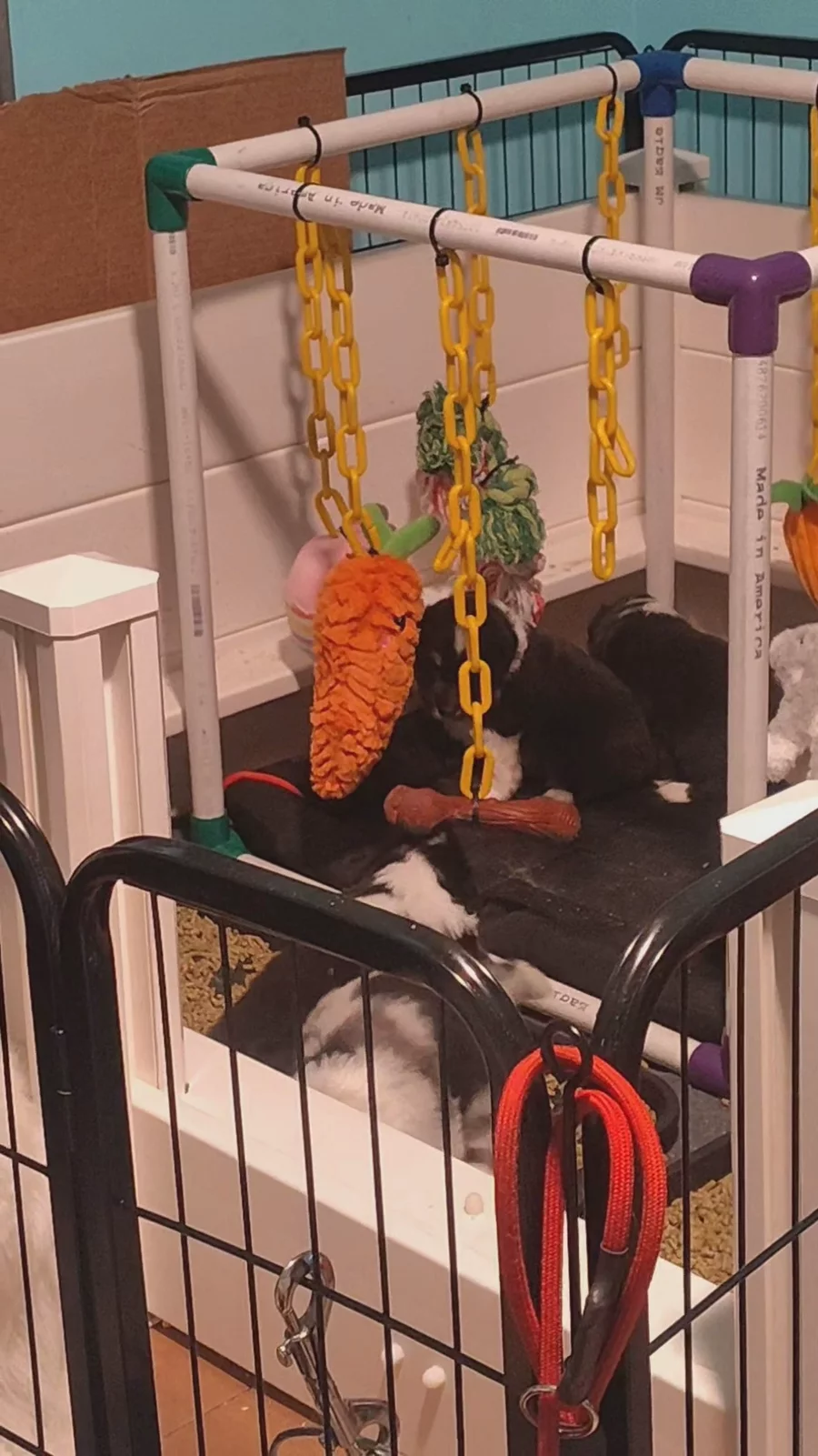 We are starting to eat real food! And we love our jungle gym 😍🥰. Starting to get the hang of the litter boxes as well. They're growing so fast. So far we have 1 tri male (Collar) and a minimal merle male (Split Face) available.