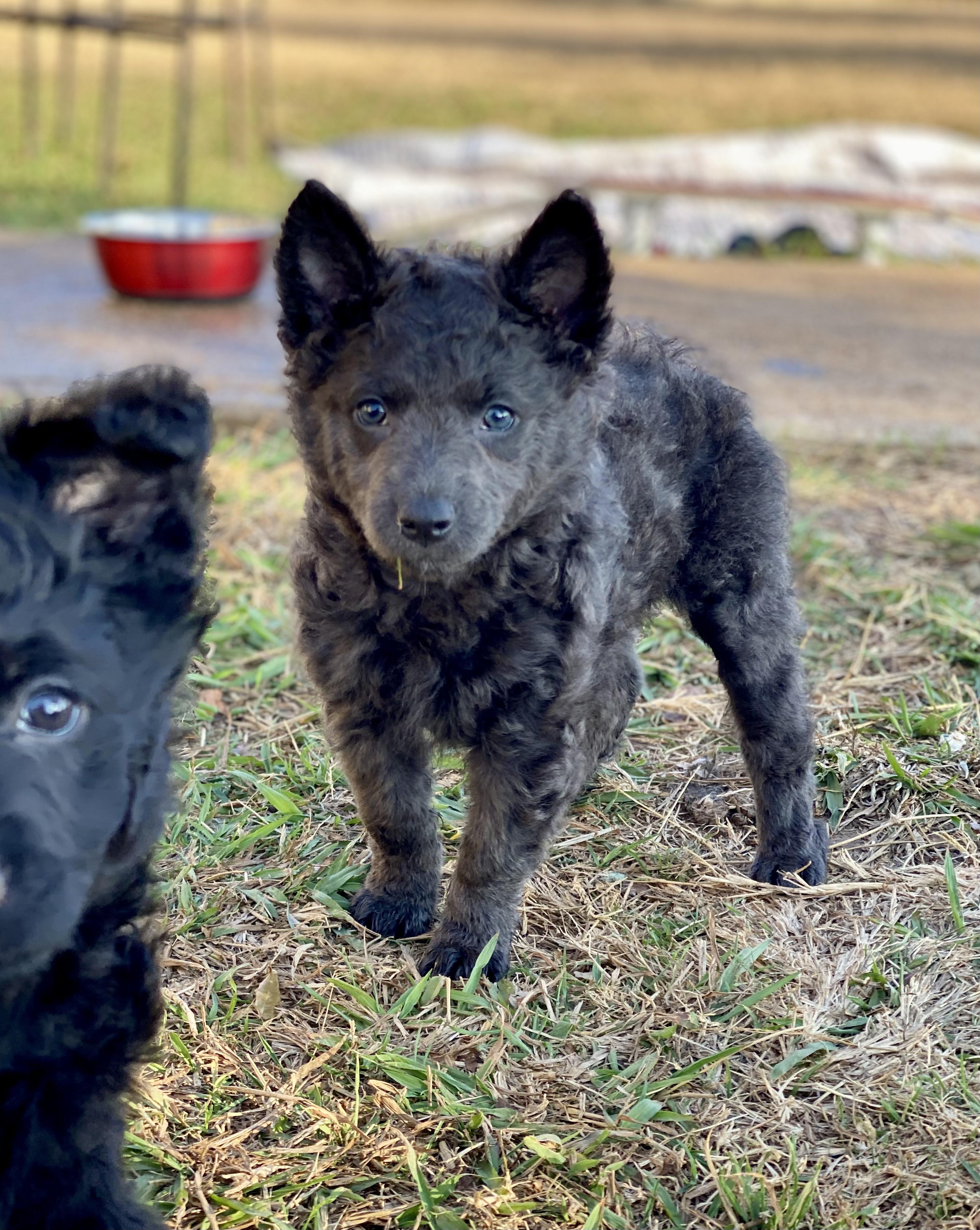 Georgia is a female Mudi. Carefully selected as a great representative of her breed, Denise decided to make her part of their program. Denise has passed Good Dog’s screening process, which involved a review of their breeding practices, environment, and the mental and physical health of their dogs.