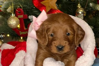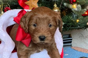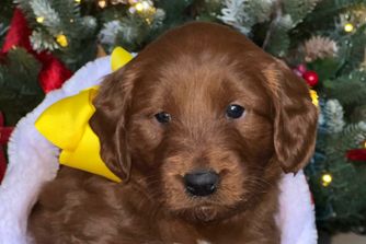 Several years ago my oldest son purchased a Goldendoodle for Santa to give to his kids at Christmas. We were charged with watching the puppy, for a couple of days, until Christmas. On Christmas Eve my husband, dressed as Santa, delivered the puppy. From then on we were smitten with Goldendoodles and started our breeding program.