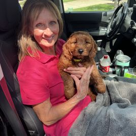 I'm Jean E' G., the breeder behind Gray Doodles located in Midlothian, TX. We have been breeding Goldendoodles since 2010, and are now breeding Aussiedoodles also. Our goal is to raise healthy and well socialized dogs. Our dogs are our pets and live in the house with us. We live on a 1.3 acre lot where they can run, play and enjoy hanging out with us and our grandkids.