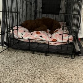 My daughter and I drove 4.5 hrs to Jean’s house after Jean arranged her grand daughter to meet us at her house due to her being overseas. Jean is very good with communicating with us about the puppy’s personality. We also got to meet the mom and dad of the puppies. They are all so sweet, friendly and lively. I can tell Jean’s family has been really taking good care of all the puppies. They are all in good living condition and very happy. We brought the puppy home on the same day. Now it has been only one week and the puppy has improved so much in adapting to the new family. We are trying to crate train him and he almost slept 7 hours last night in his crate . He is a sweet heart and absolutely adorable. We are all so in love with him. We are very grateful for Jean’s family for giving us the opportunity to adopt Bryan, now Rho. We are looking forward to all the good memories we will have with Rho.