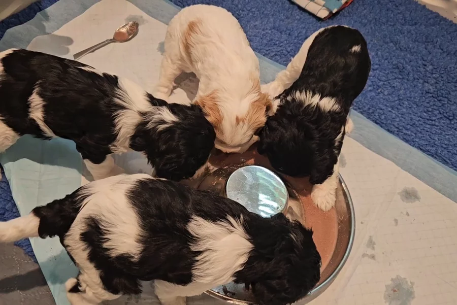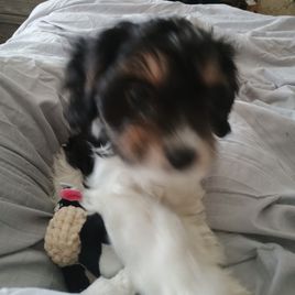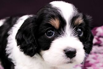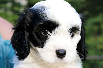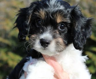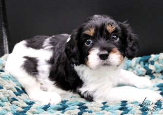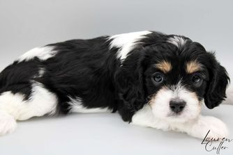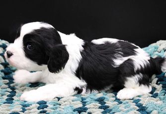 Cavalier King Charles Spaniel puppies include blenheim and tri-color. Cavapoo puppies include merle, white, black and white, black, tri-color, and blenheim. Colors will vary depending on the parent dogs.