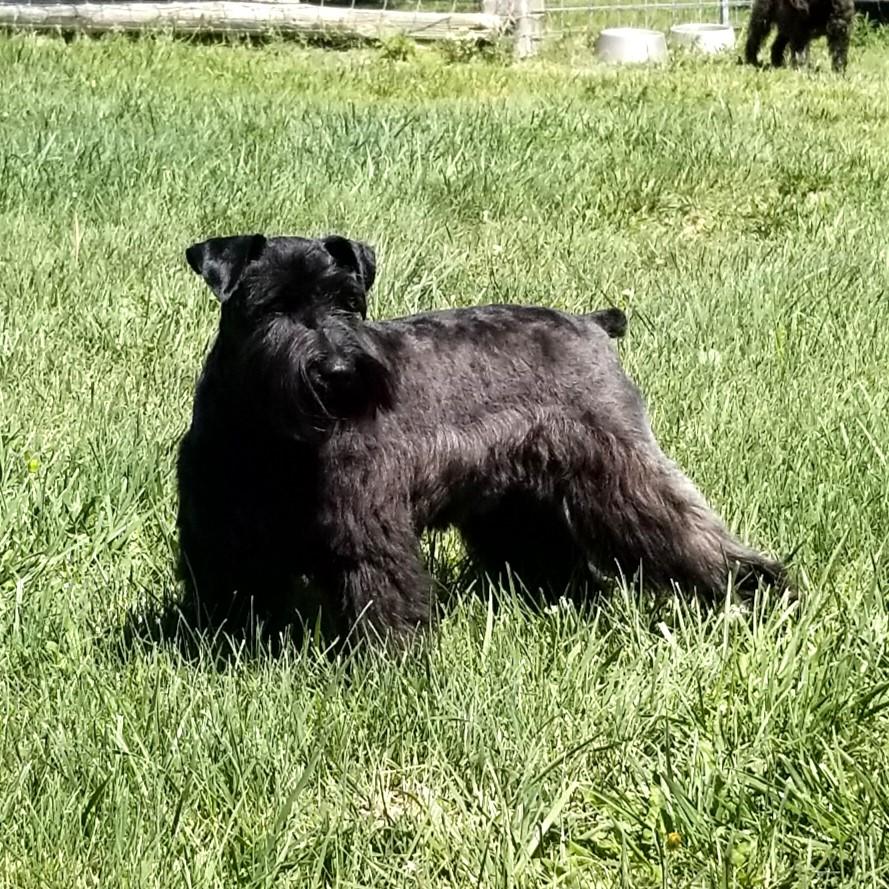 My husband also grew up with dogs and horses and he had a schnauzer when he was a boy. He suggested we get one and when we did, I fell in love with the breed. We got another and had our first litter and I was hooked.