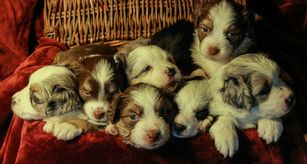 My breeding girls live with me in my home. They are pets first, breeders second. They are fully DNA tested, hips, elbows. and eyes are certified. Pups are handled every day and socialized using sounds and exposure to people across a variety of demographics. I provide a live puppy cam that is on 24/7 so new owners can watch their puppy grow and interact with people.
