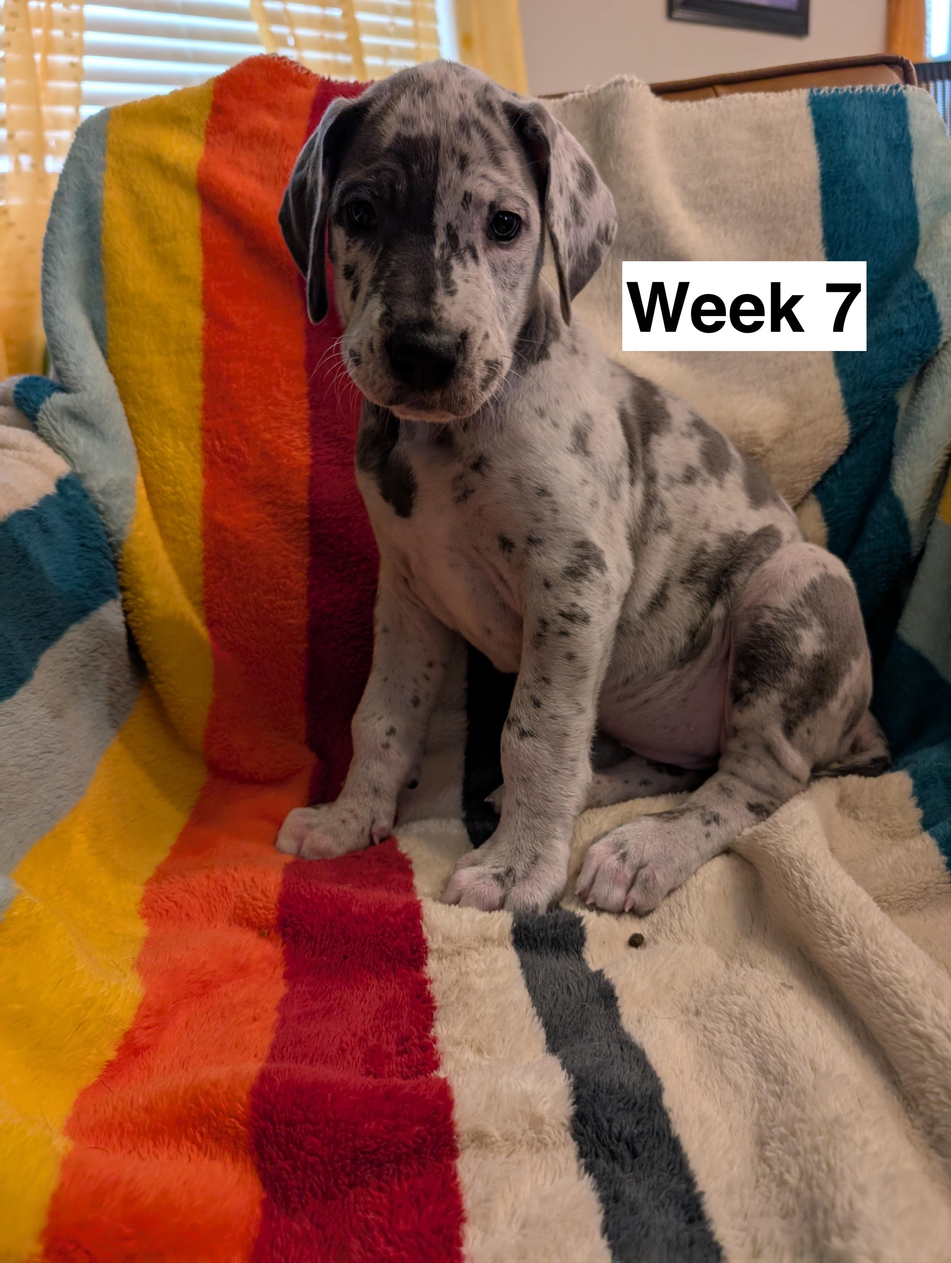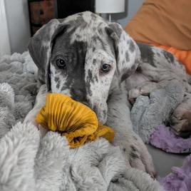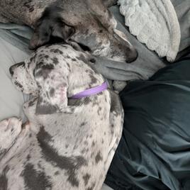 I'm Jeri H., the breeder behind Great Dames with PNW Great Danes located in Vancouver`, WA. Our dogs are bred for health and temperament with the goal of making our puppies great companions for any home. Our puppies are socialized with a variety of humans, pets, and environments. We provide Chris Puls' puppy socialization list with each puppy with checks on what they've been exposed to.