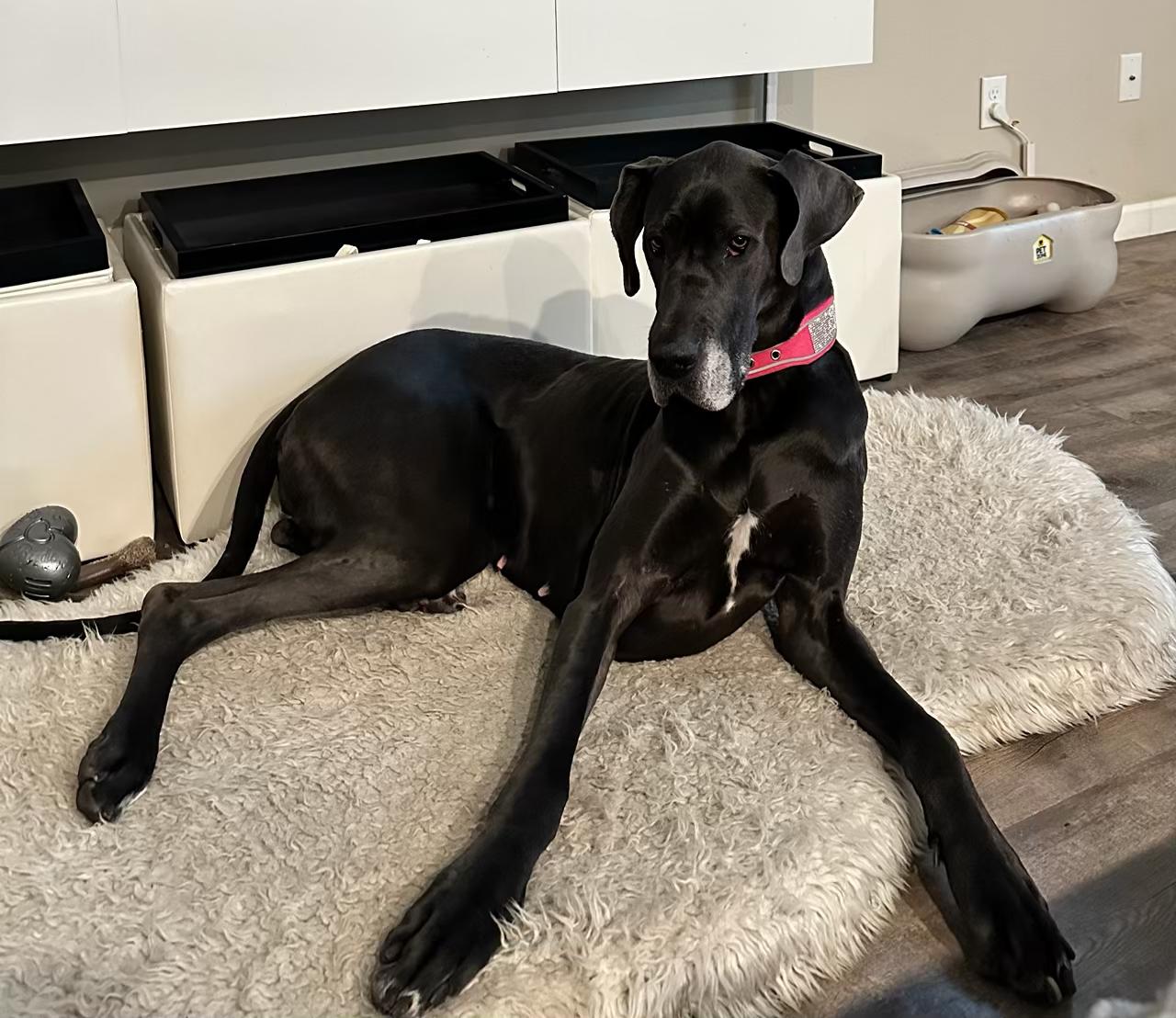 Ruth is a female Great Dane. Carefully selected as a great representative of her breed, Jeri decided to make her part of their program. Jeri has passed Good Dog’s screening process, which involved a review of their breeding practices, environment, and the mental and physical health of their dogs.