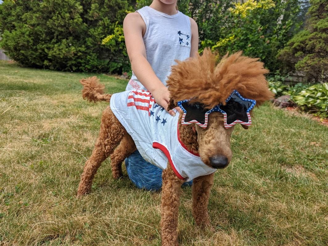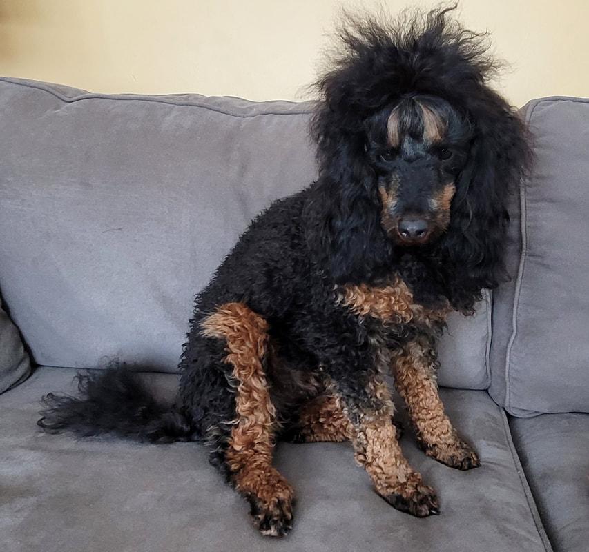 Grace is queen of our pack and she is a fair ruler. She only gets mad at other dogs when they are not following the rules of the house. Grace belongs to my son, David. She and him have "talks" where he'll share his day and she responds. It's very endearing and they are very close. Grace is a descendant of poodles that came to us from Germany.
